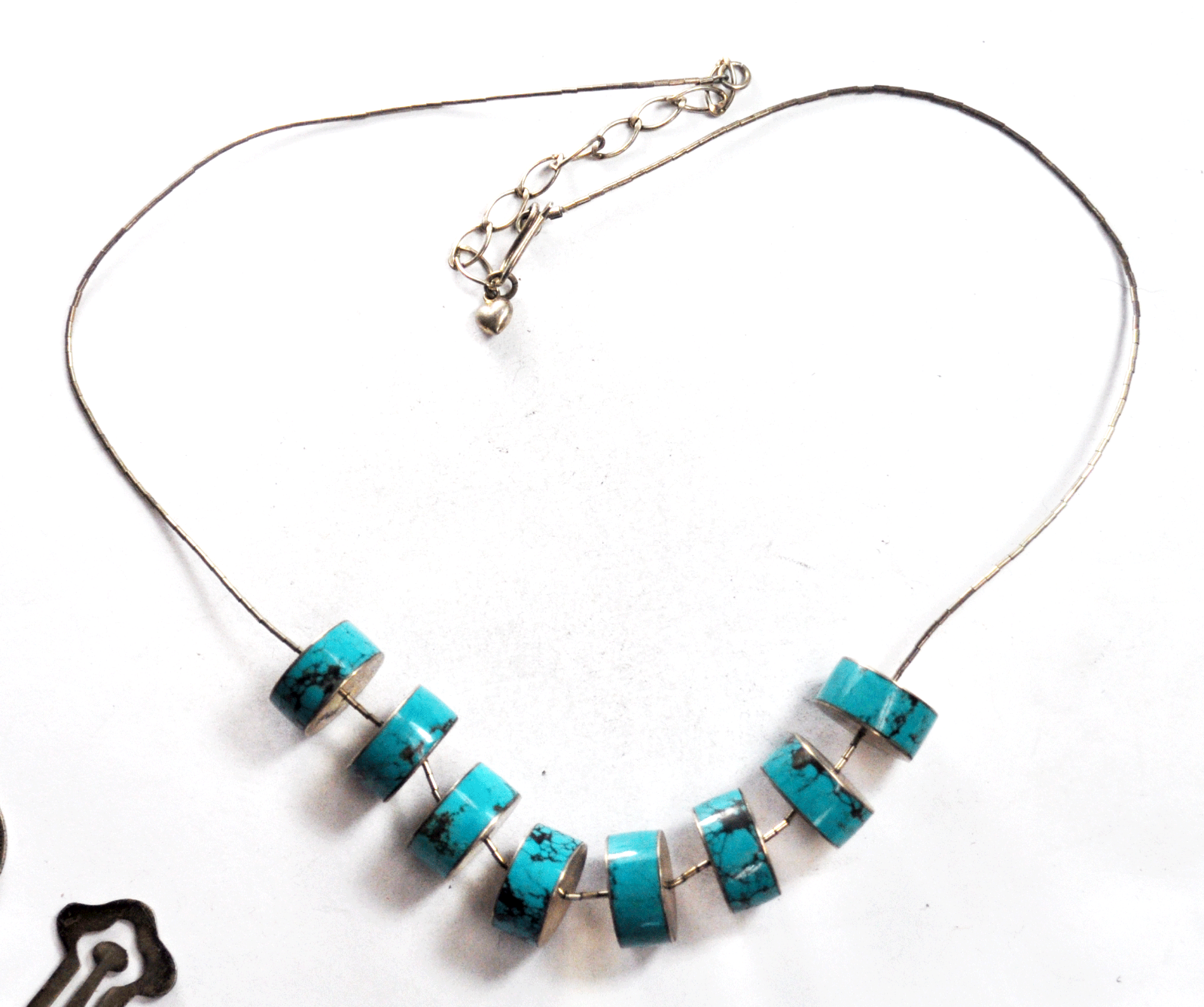 Sterling Liquid Silver Desert Rose 16mm Sandwiched Turquoise Disc Necklace 21.5"