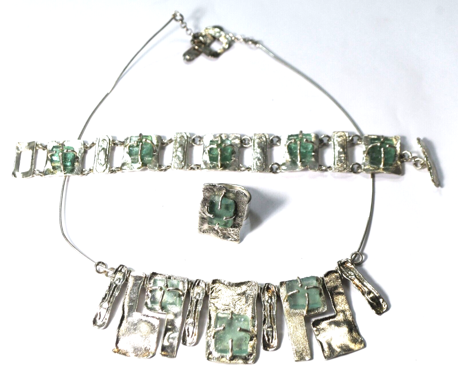 Sterling Lulu Hammerstein Sea Glass 7" Bracelet 16.5" Necklace & Sz 5 Ring Set