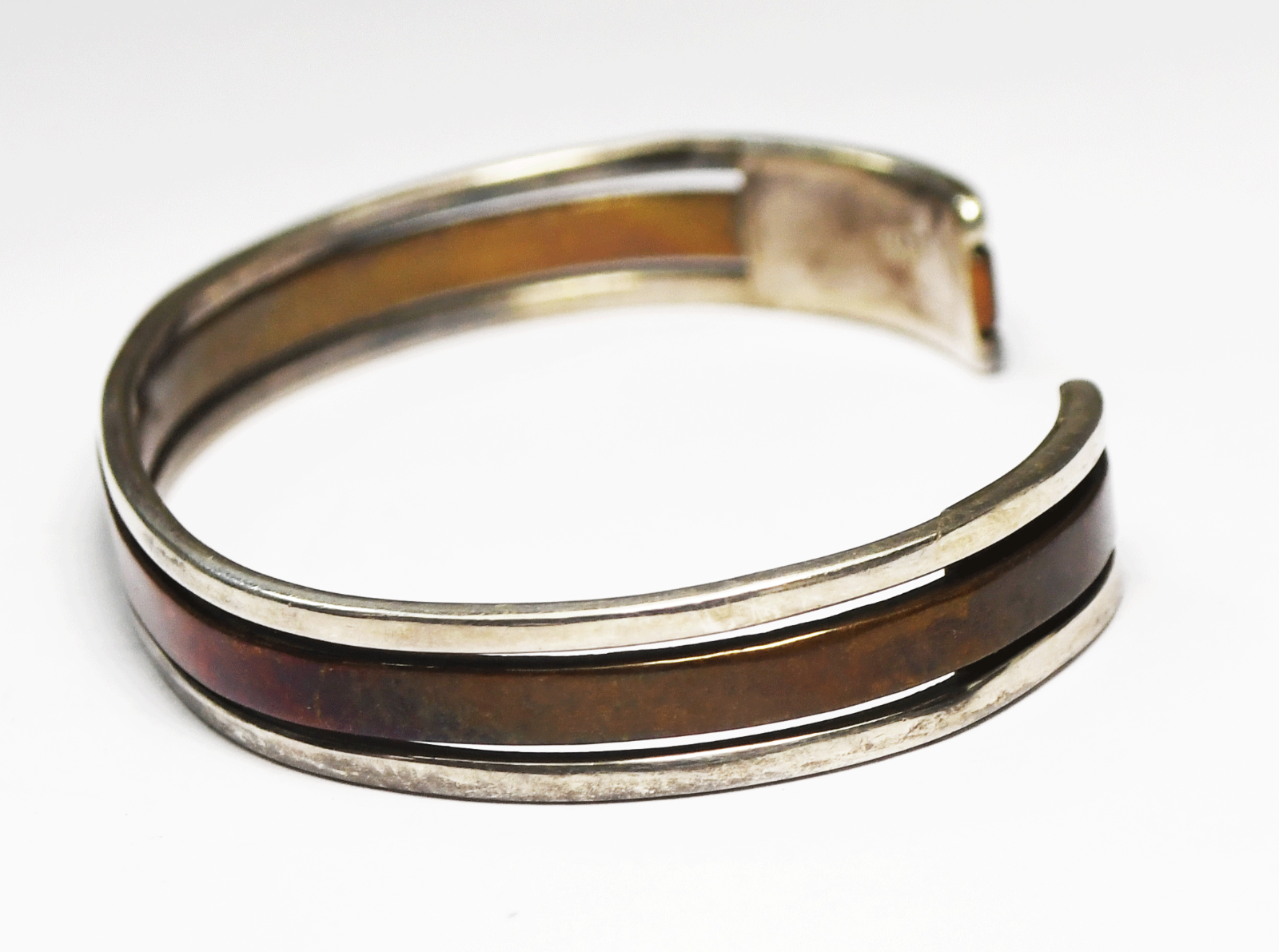 Sterling Mexico 3 Part Brass Center 8mm Cuff Bracelet 7" Wrist