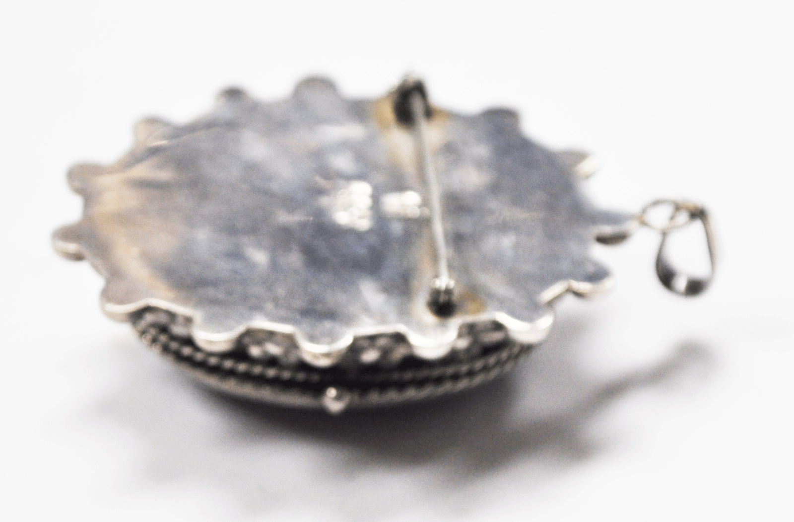 Sterling Mexico Black Onyx Oval T5-79 Large Pendant Brooch 2-7/8" x 1-7/8 42g