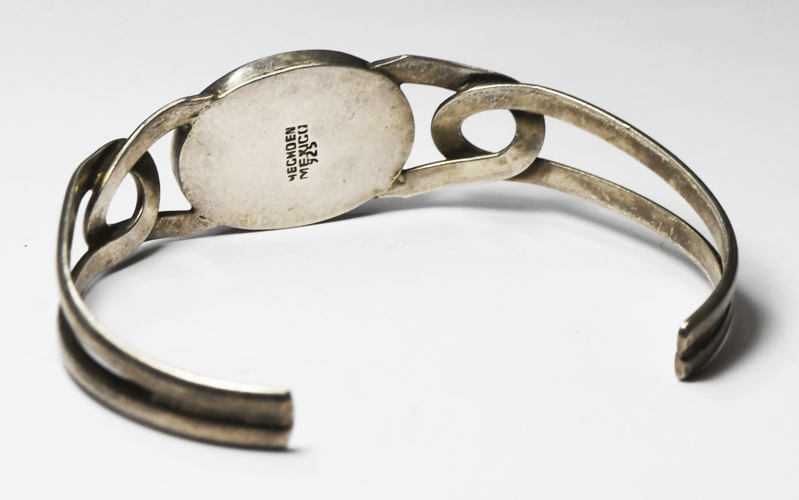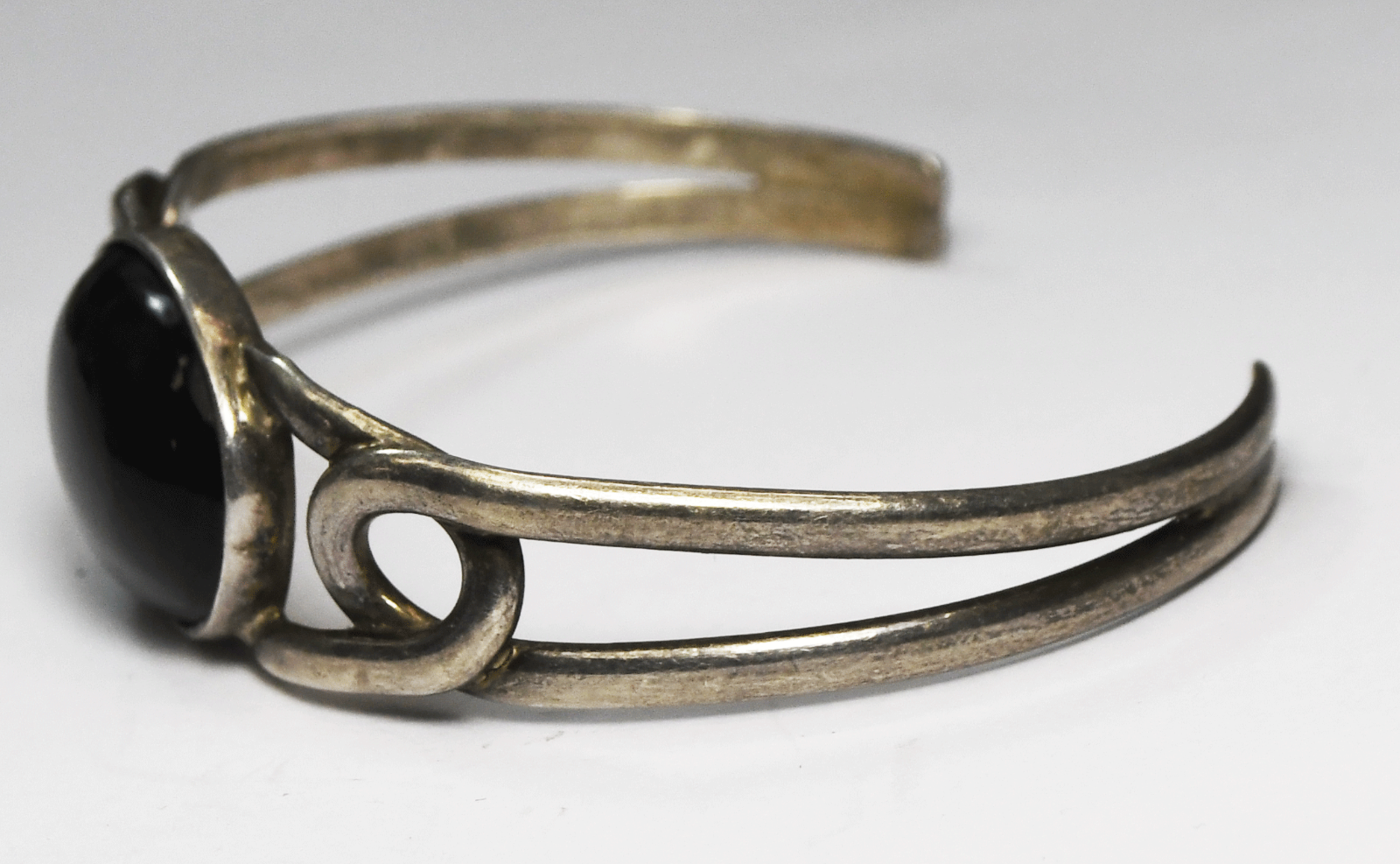 Sterling Mexico Black Onyx Split Cuff Interlocking Cuff Bracelet 7.25" Wrist