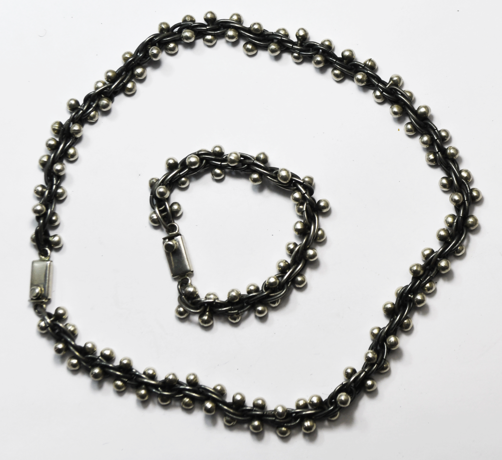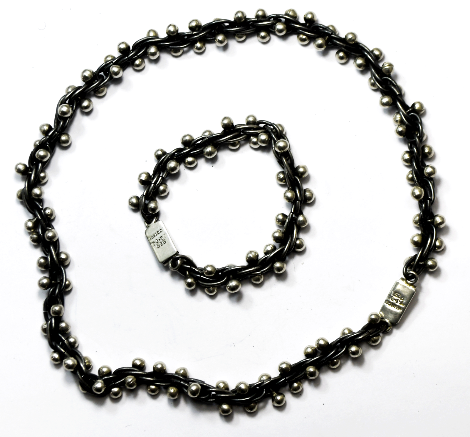 Sterling Mexico Molecule 20" Necklace & 7-1/2" Bracelet 13mm Oxidized Set 152g