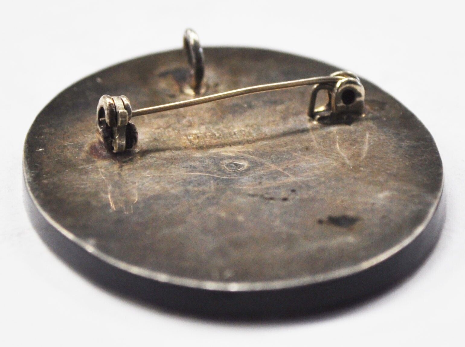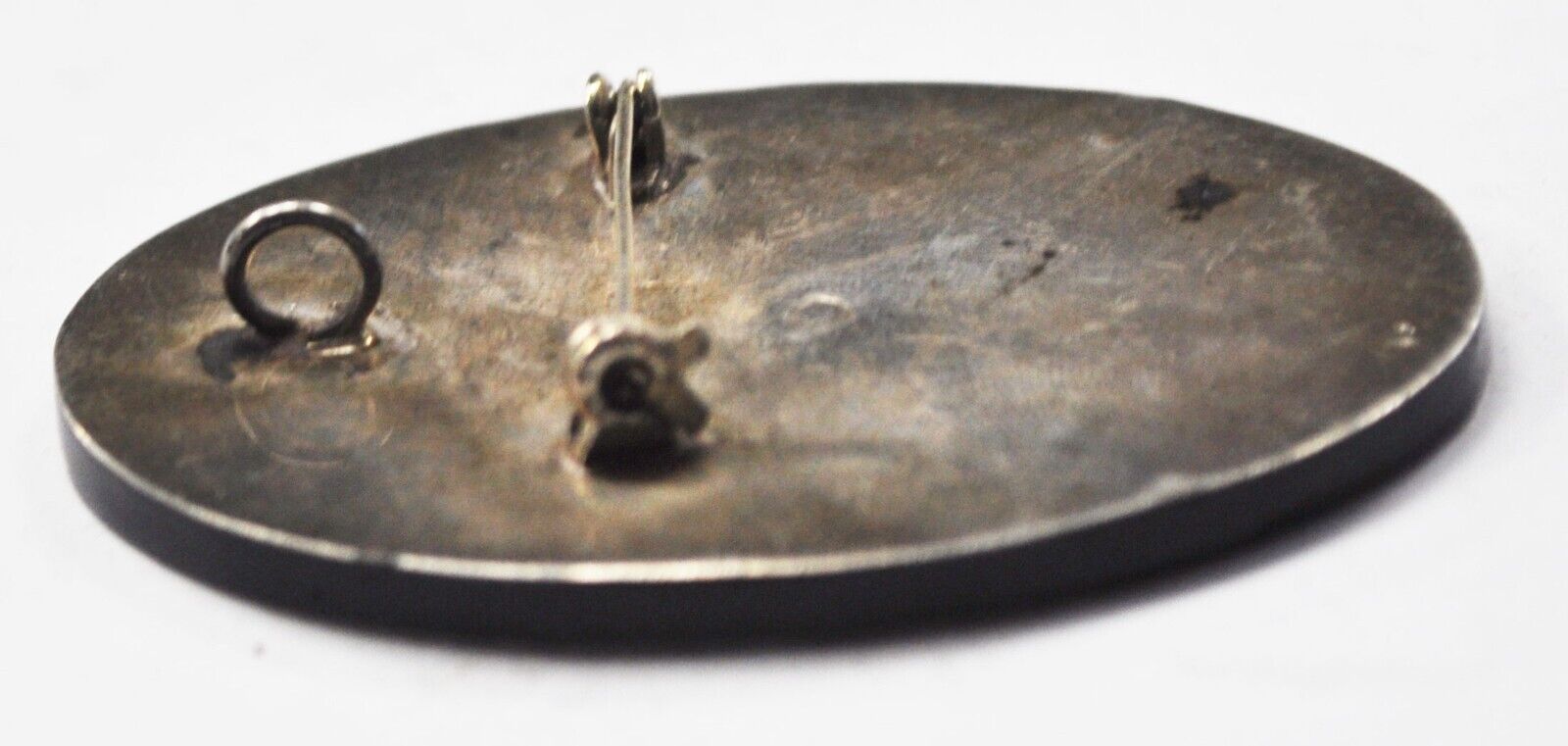 Sterling Mexico Oval Black Onyx Inlay Aztec Pendant Brooch 59mm x 41mm