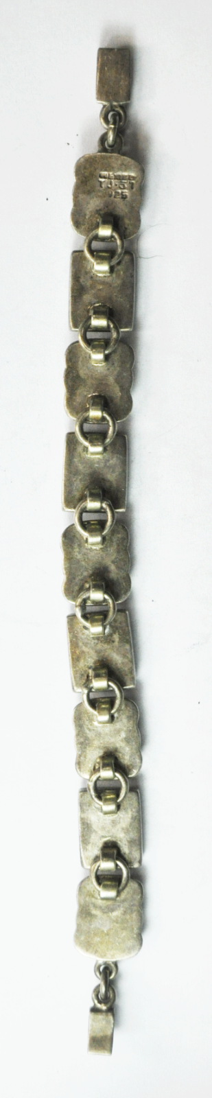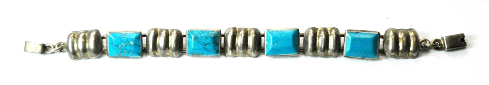 Sterling Mexico TJ-37 Rectangle Link Bracelet Emerald Cut Turquoise 12mm 7"
