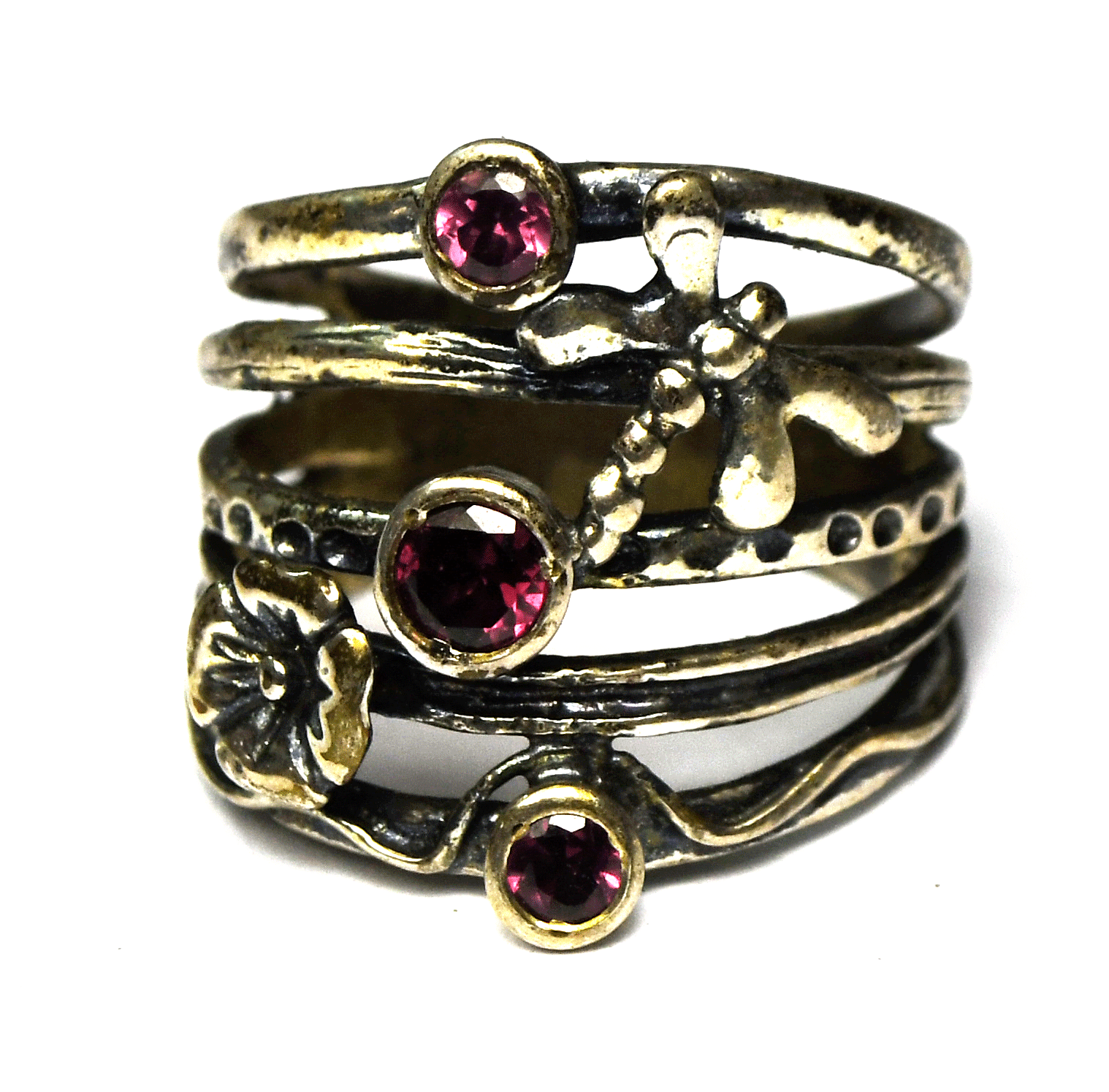 Sterling Or Paz Flower Butterfly 5 Part Split Pink Tourmaline Ring 21mm Size 9