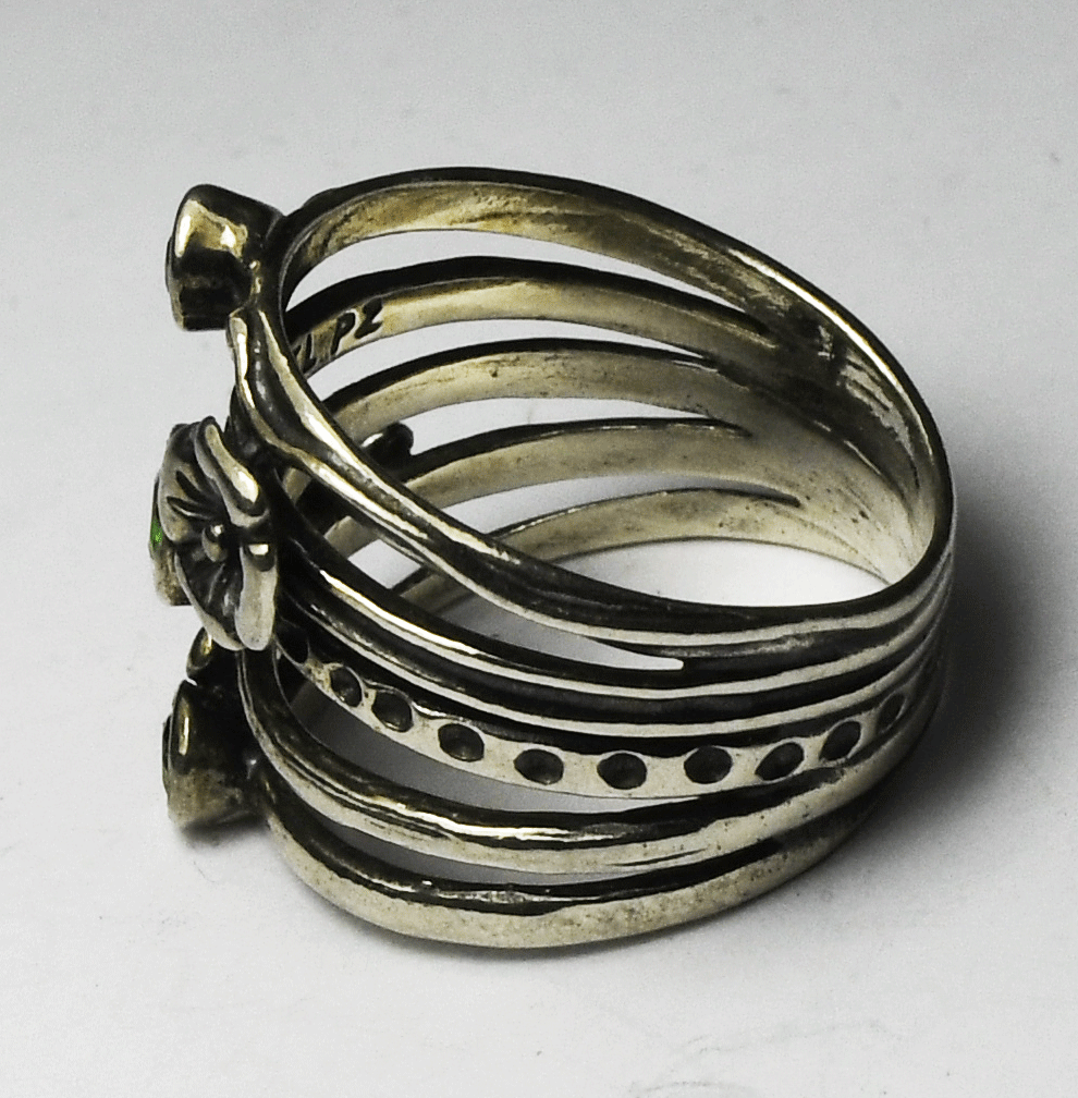 Sterling Or Paz Green Diopside Dragonfly Flower Split 5 Ring 21mm Size 9