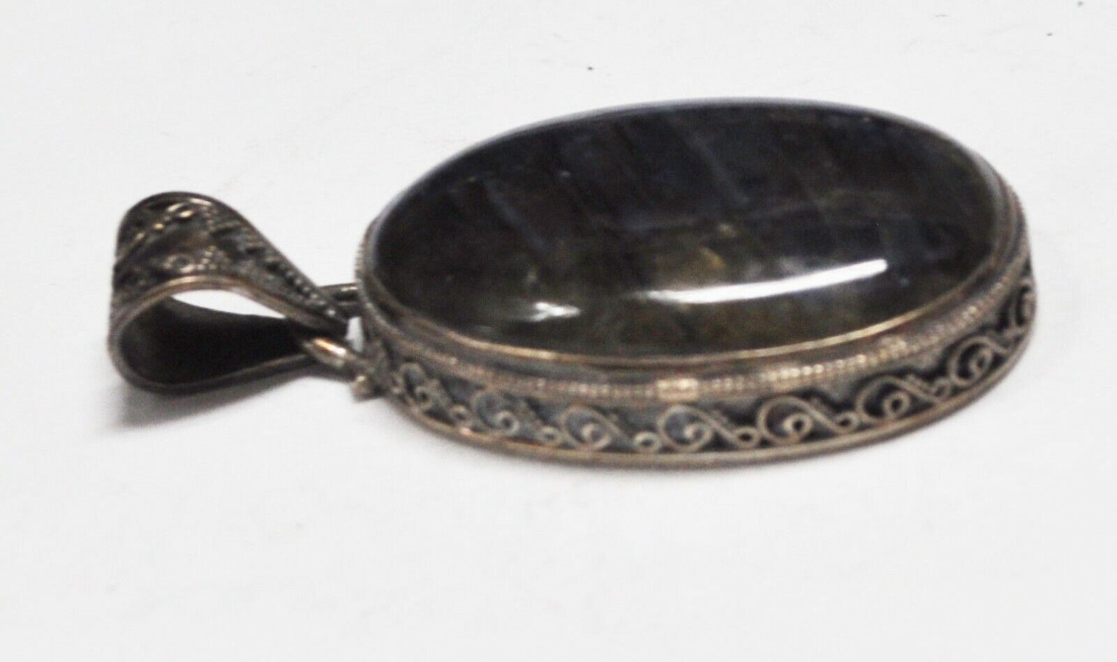 Sterling Oval Labradorite Striped Iridescent Pendant 2-3/8" x 31mm