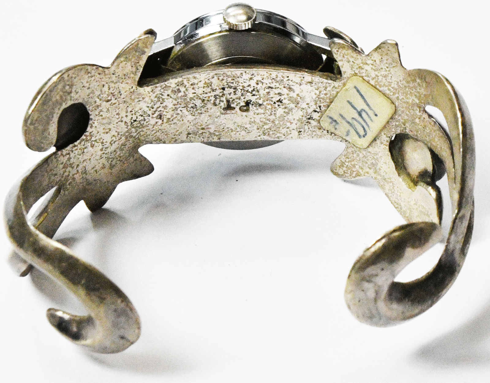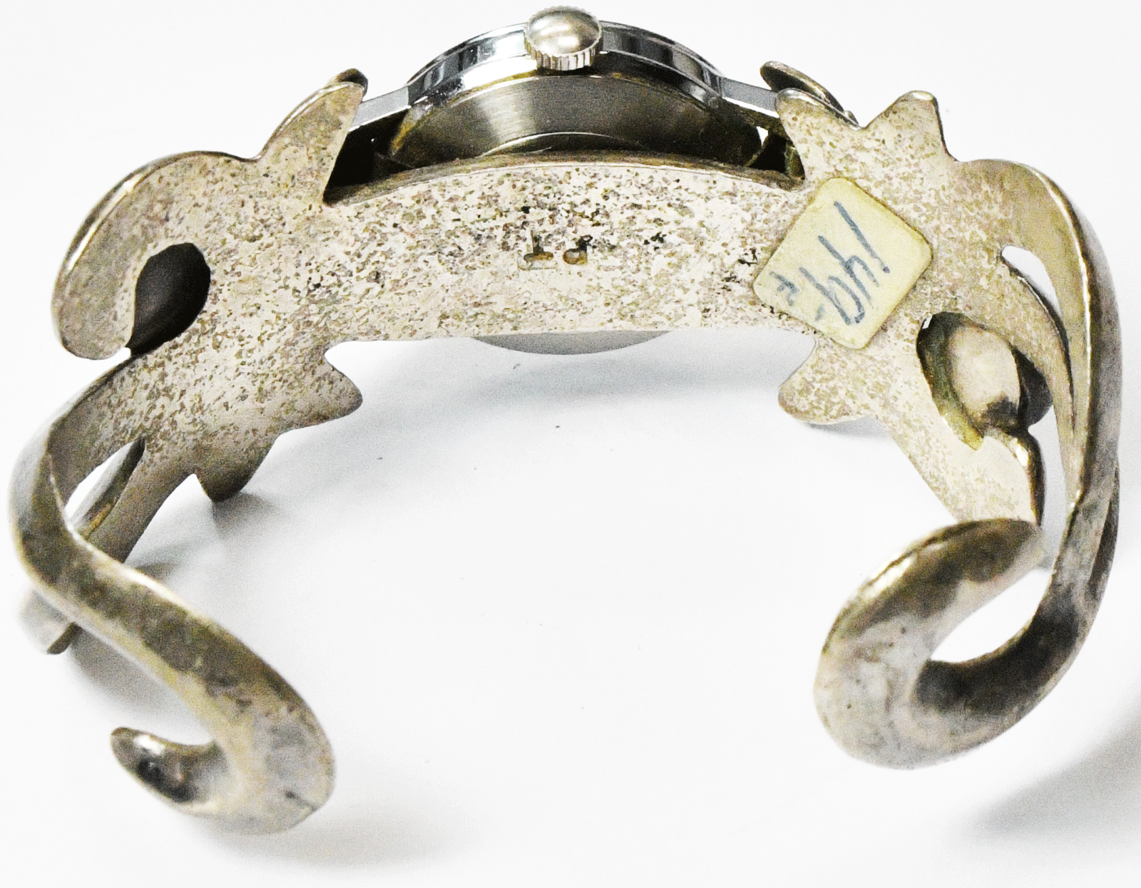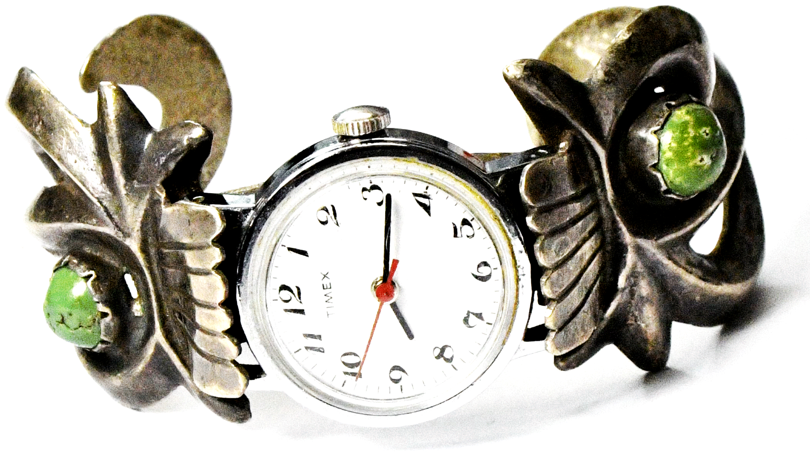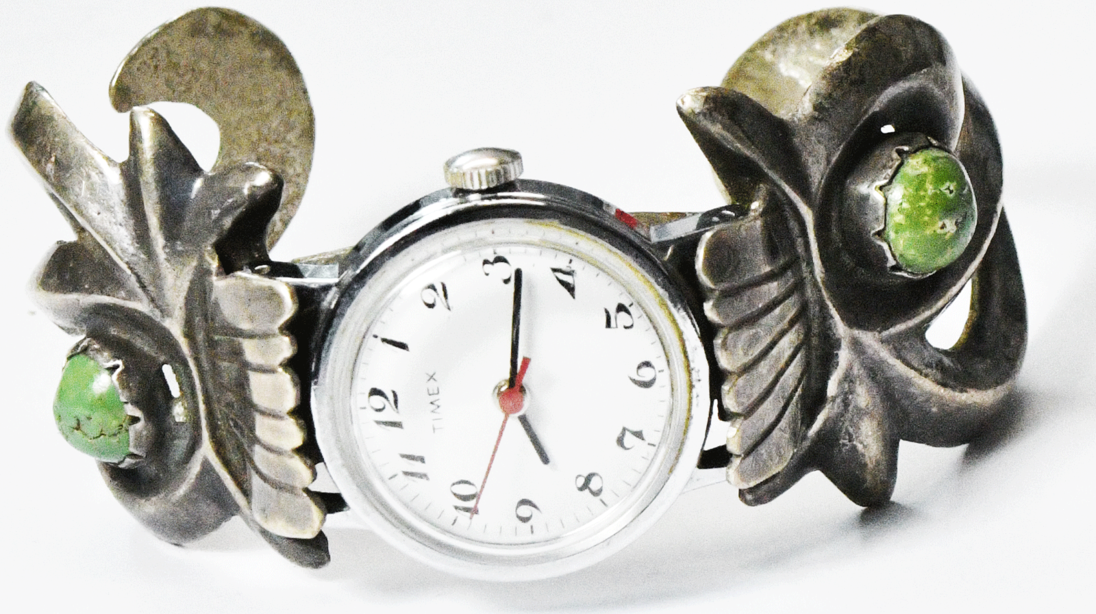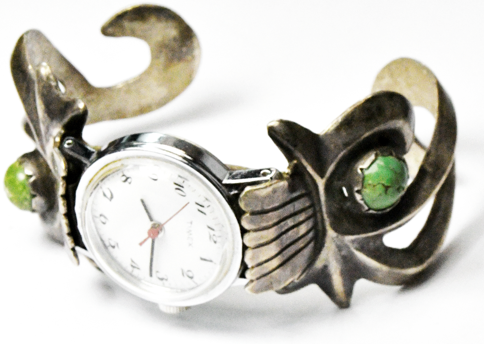 Sterling PT Sand Cast Green Turquoise Watch Cuff Bracelet 30mm 6-3/4" Wrist