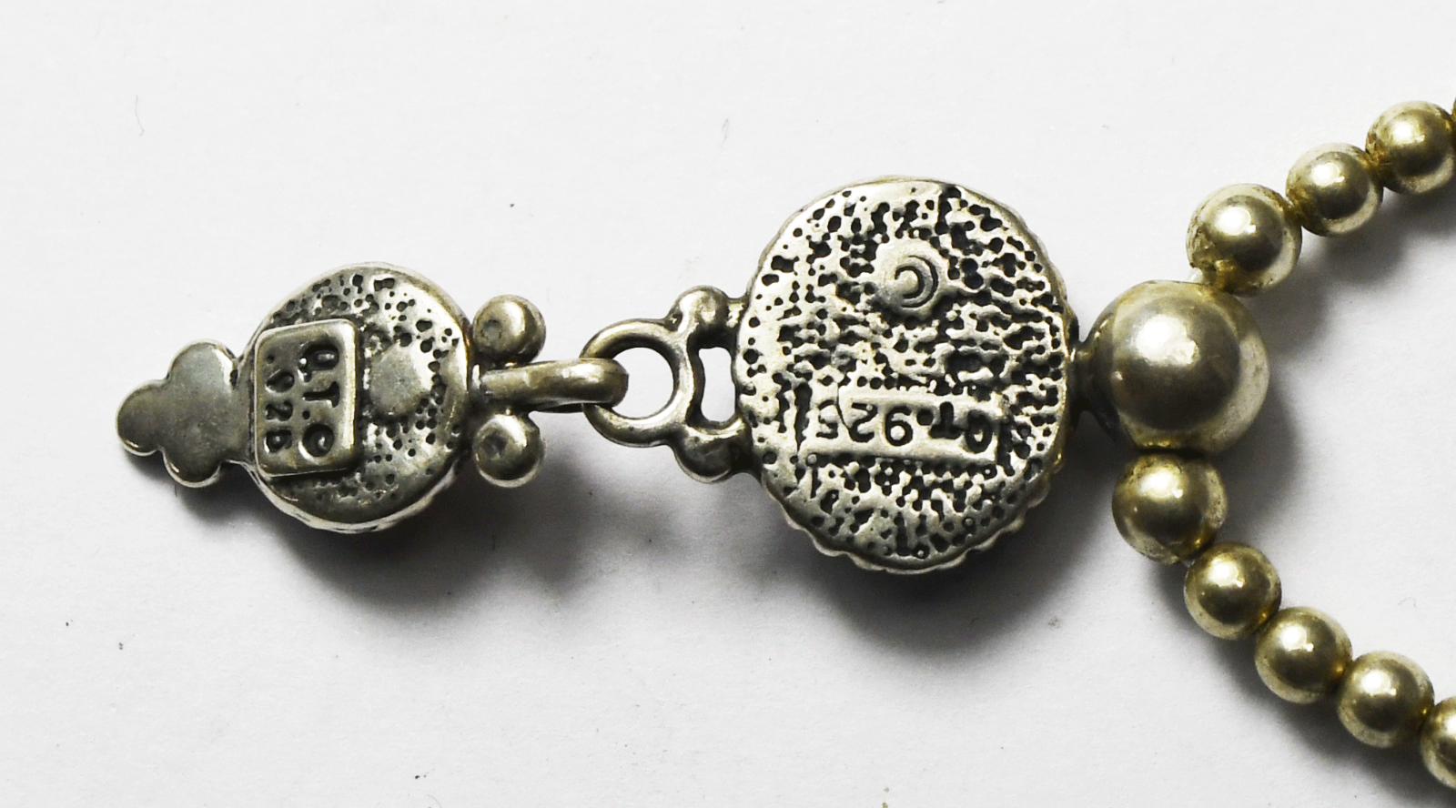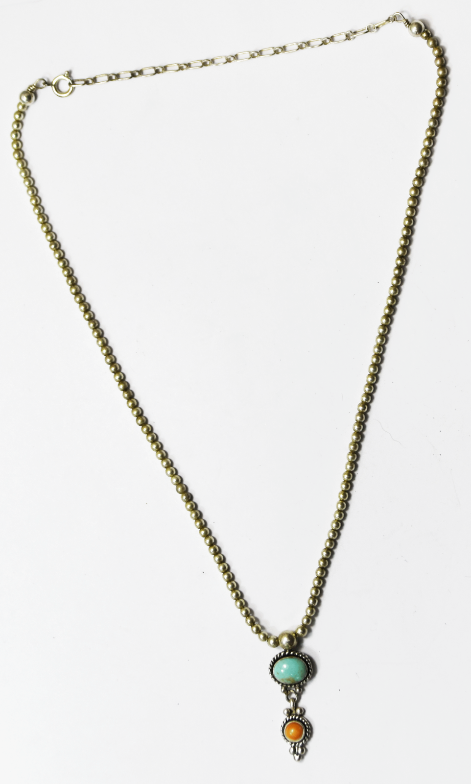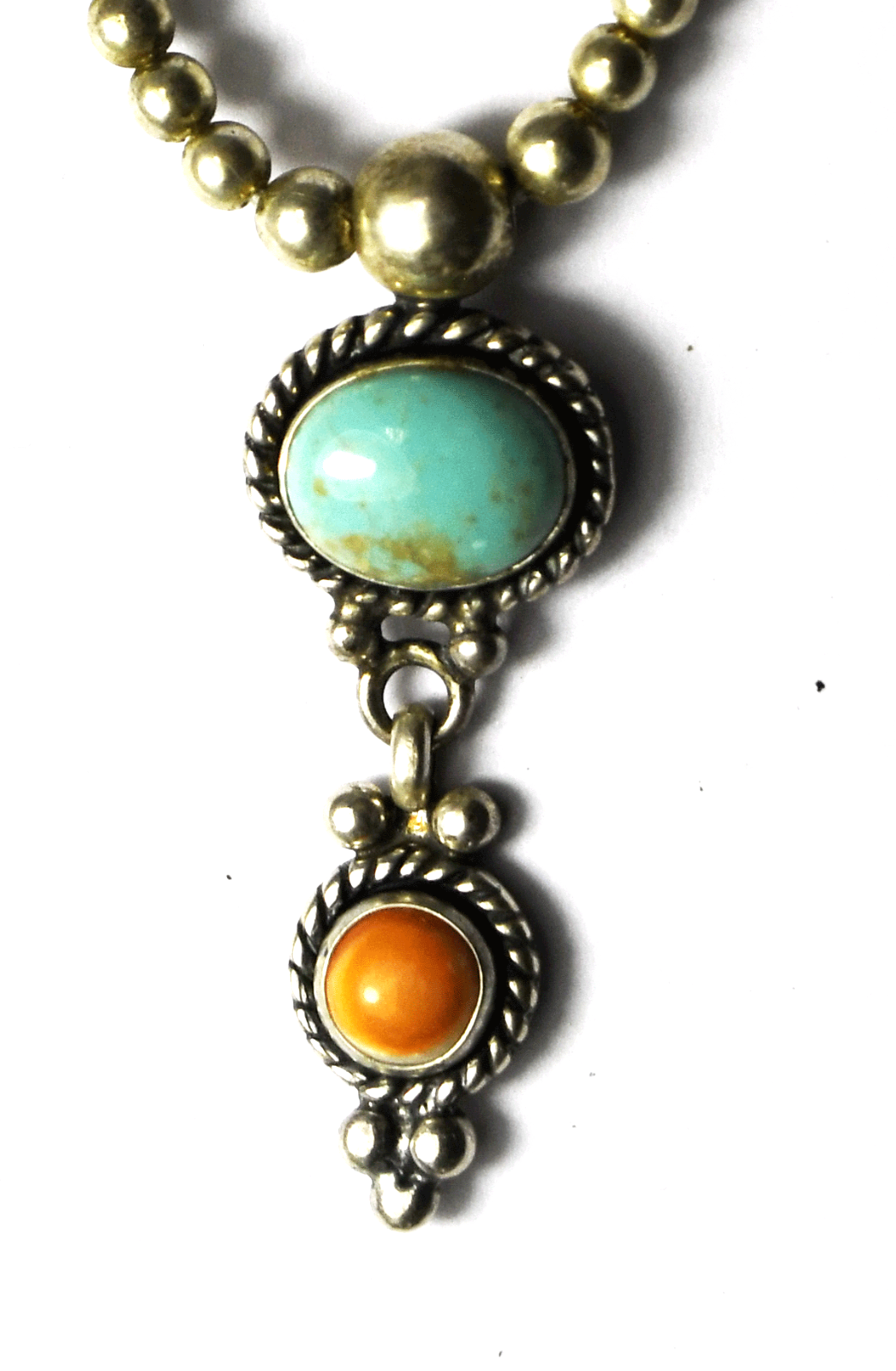 Sterling QT Quoc Turquoise MOP 1.5" Pendant Round Bead Necklace 3mm 19.5"