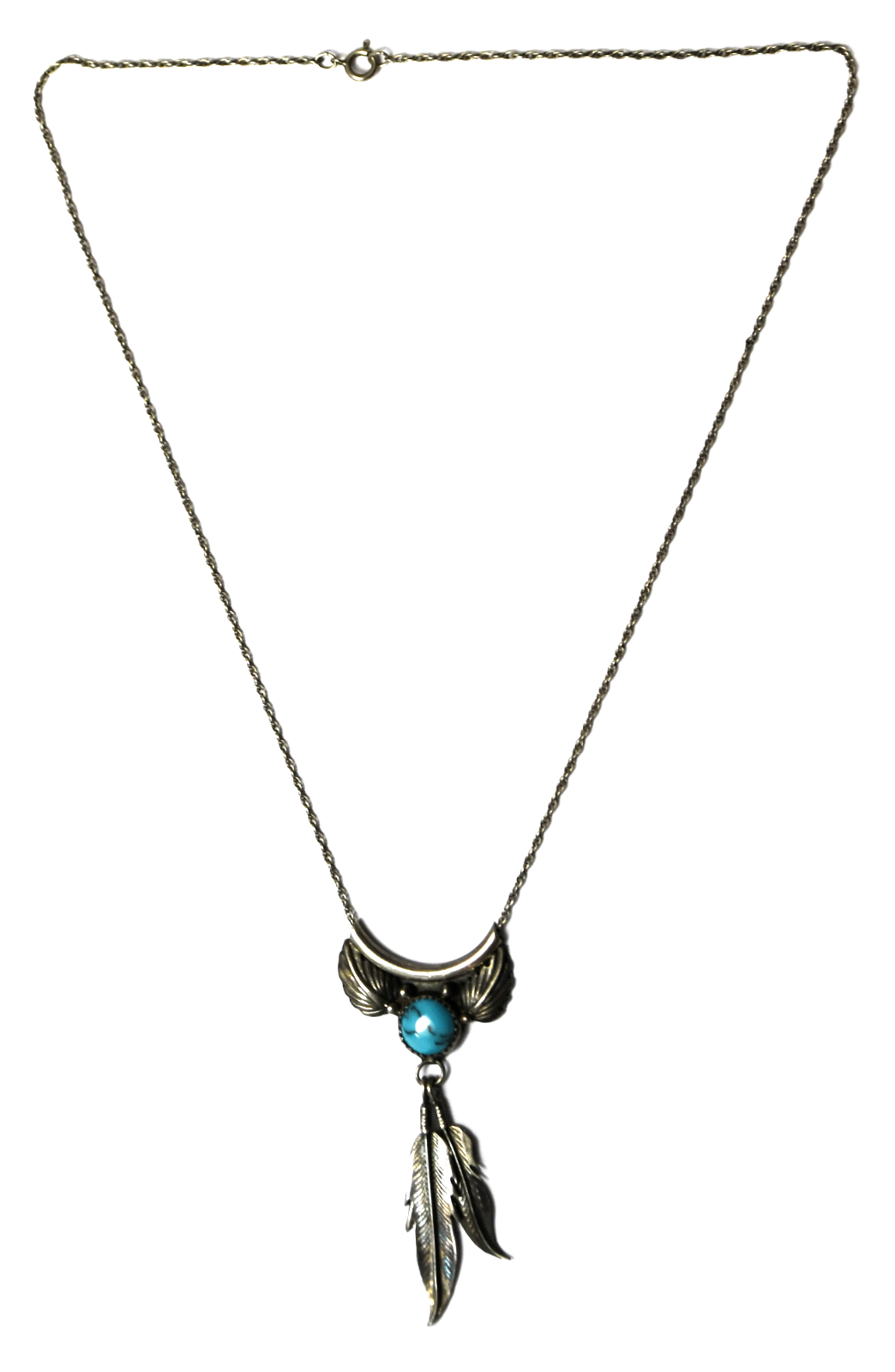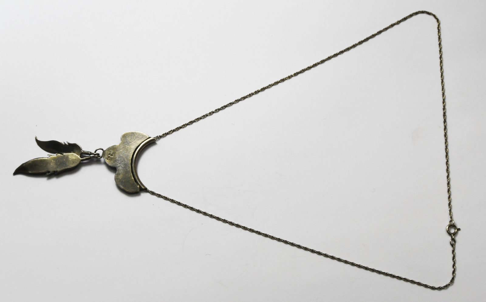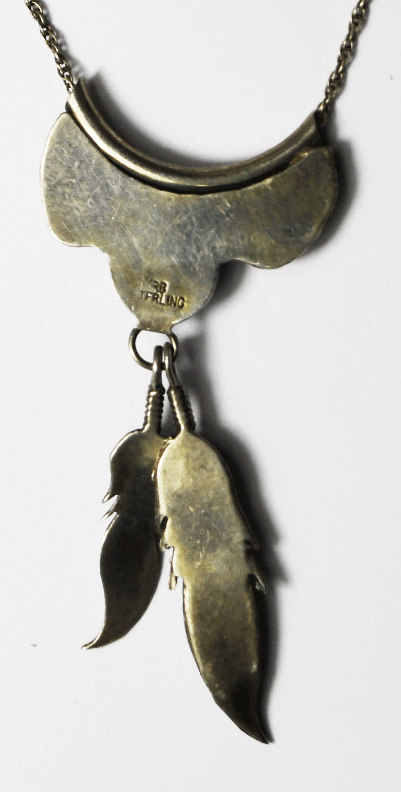 Sterling RB Floral Feather Dangle Slide Pendant 2.5" x 28mm 17.5" Necklace