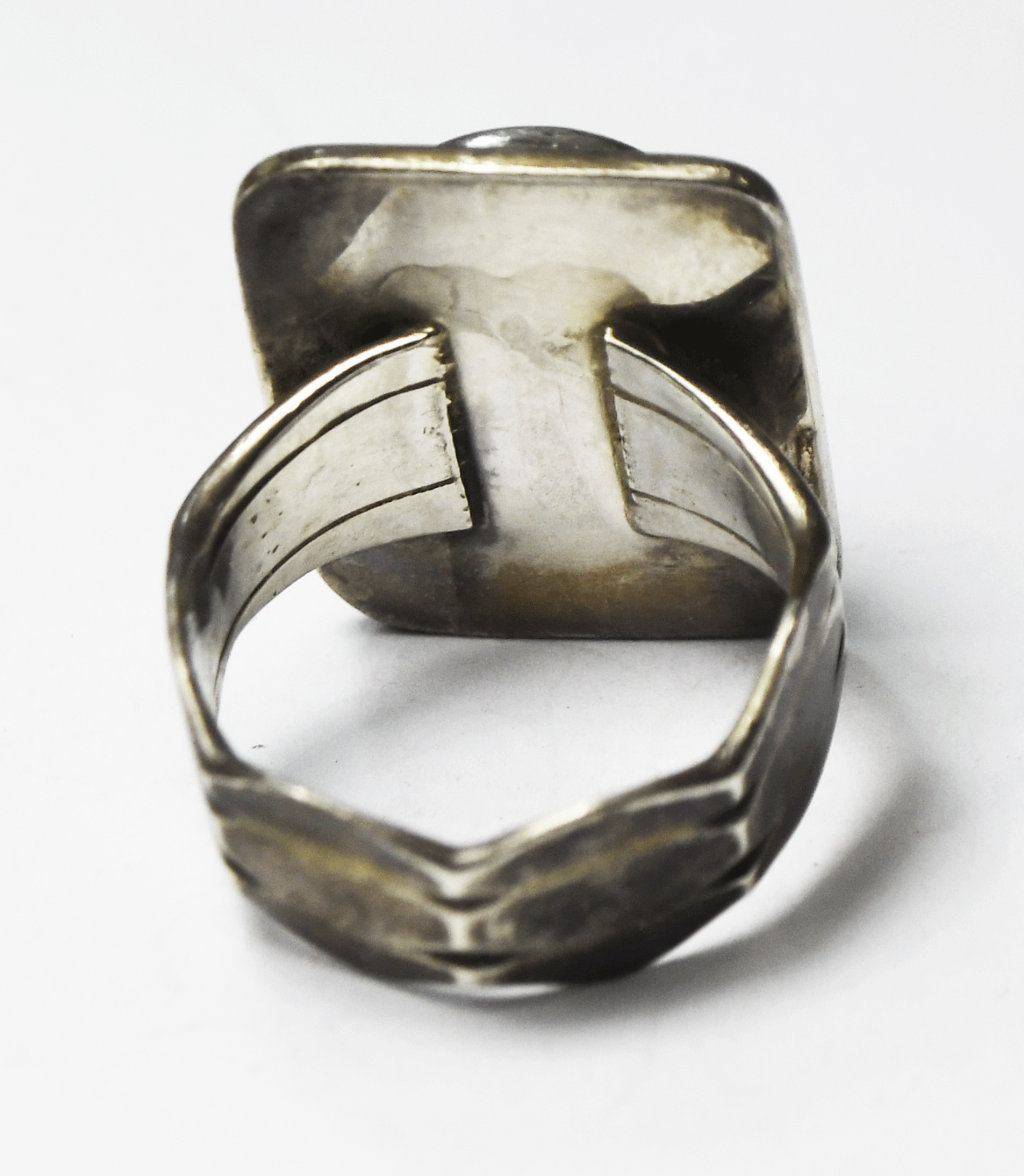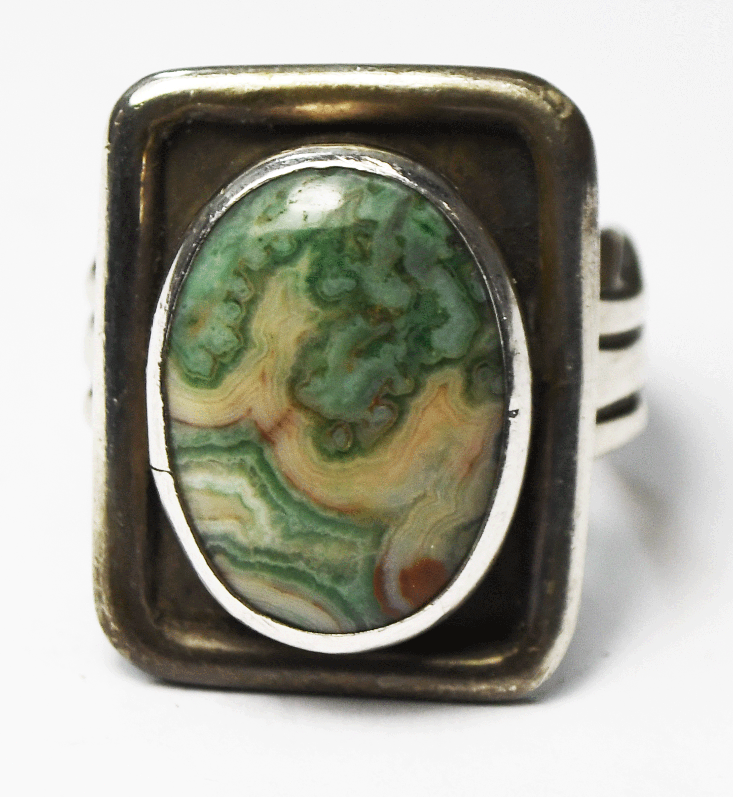 Sterling Rectangle Rainforest Jasper Ring 24mm Wave Triple Band Size 9