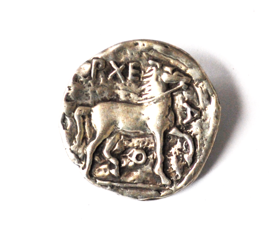 Sterling RW Ancient Coin Horse Round Brooch Pin Macedonian Didrachm 413-399 BC