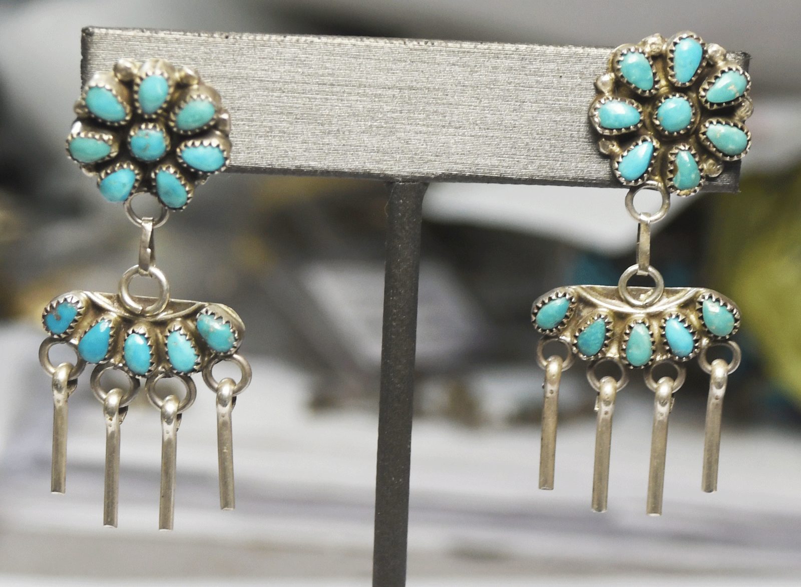 Sterling Sam Poblano Turquoise Petit Point Dangle Earrings 44mm x 21mm