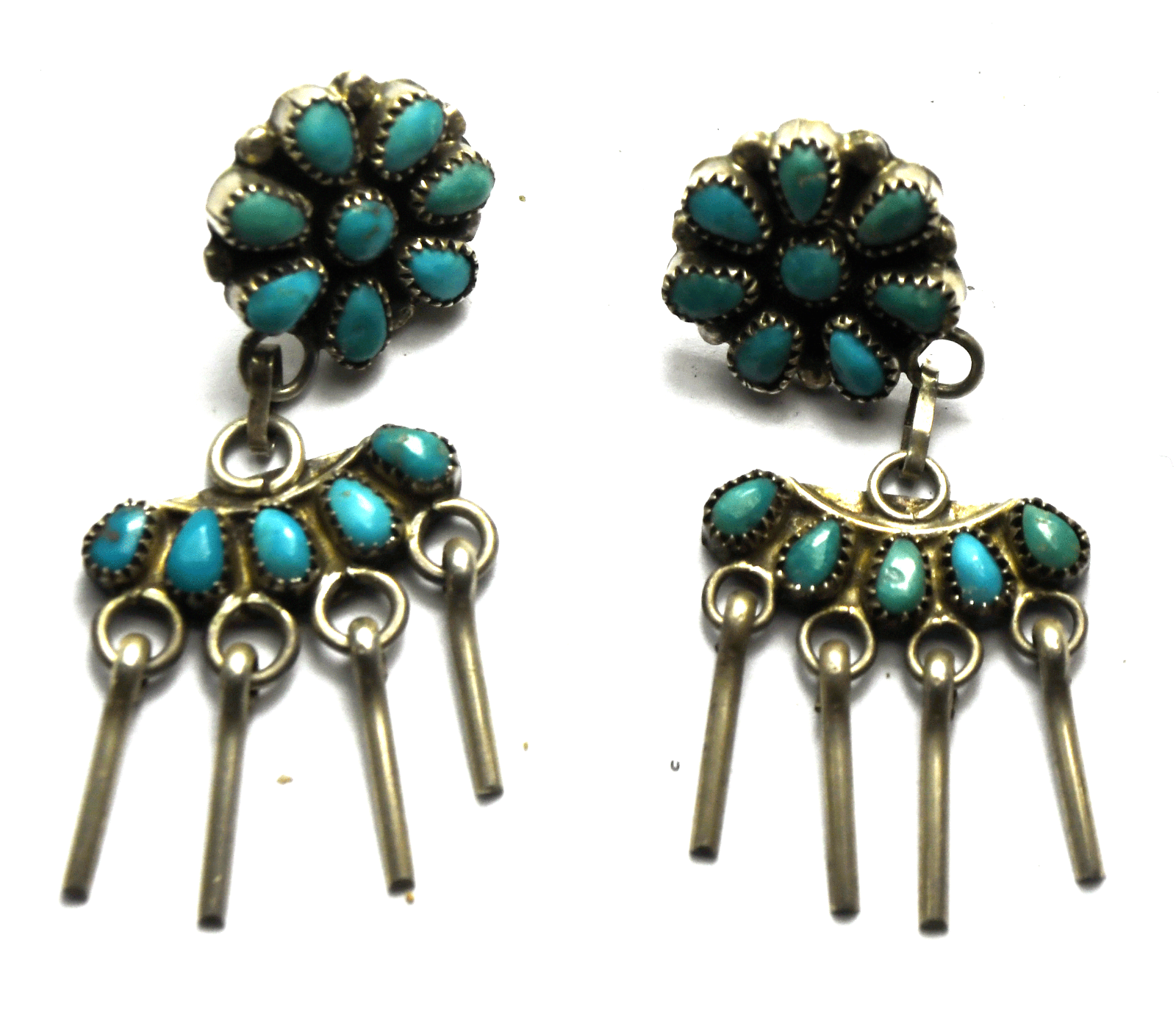 Sterling Sam Poblano Turquoise Petit Point Dangle Earrings 44mm x 21mm