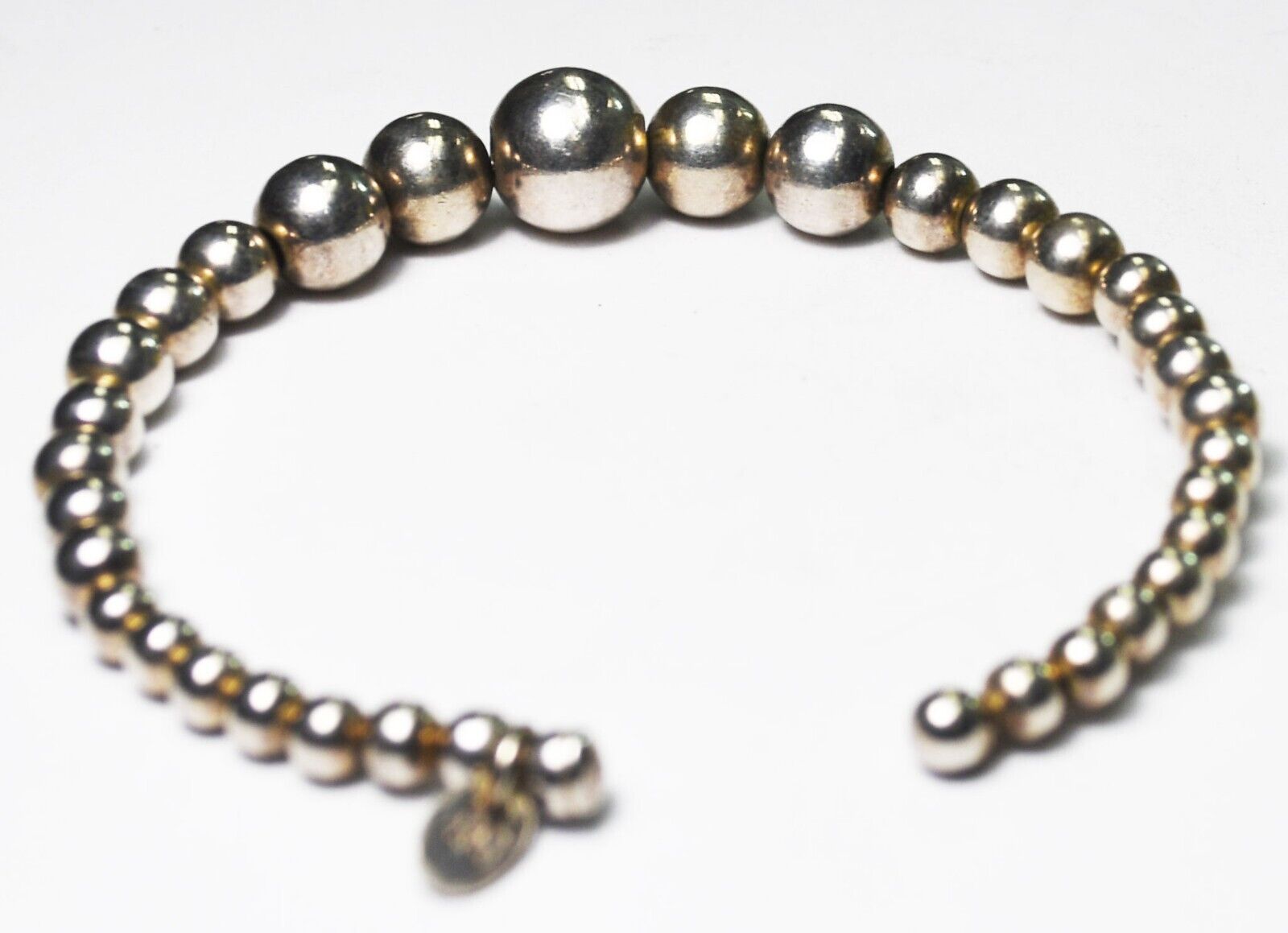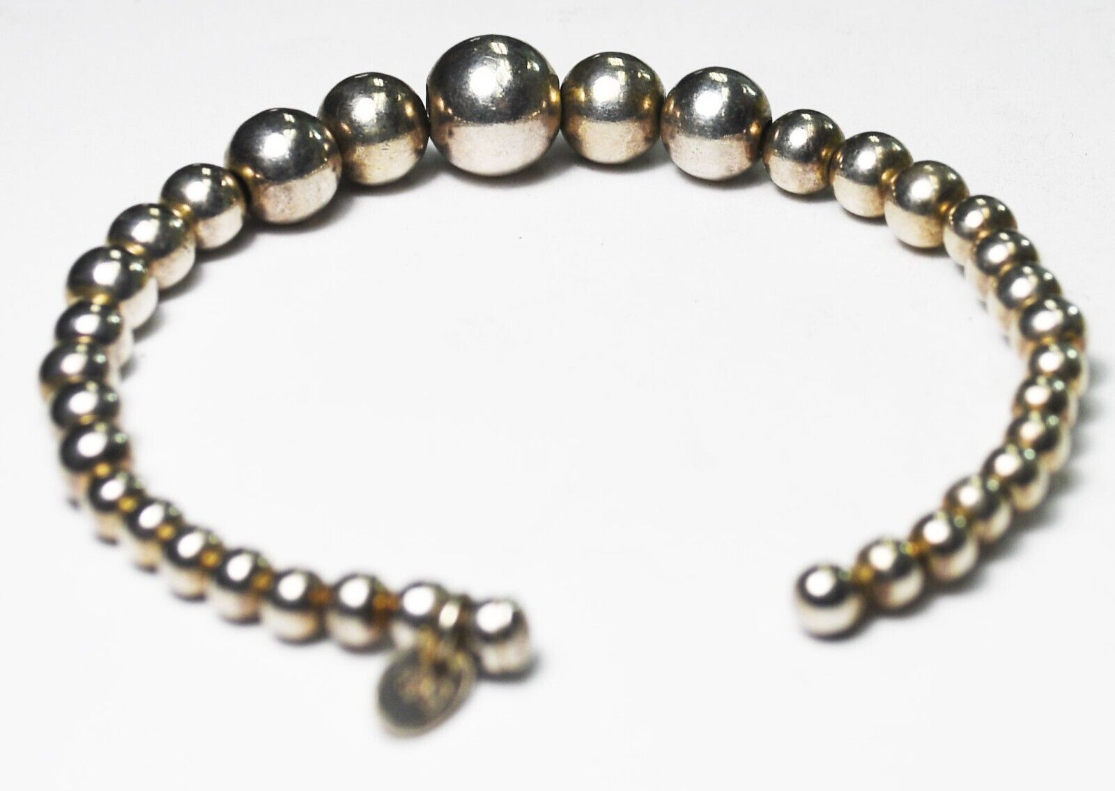 Sterling Signed B Graduated Beaded Cuff Flexible Bracelet 4mm-10mm
