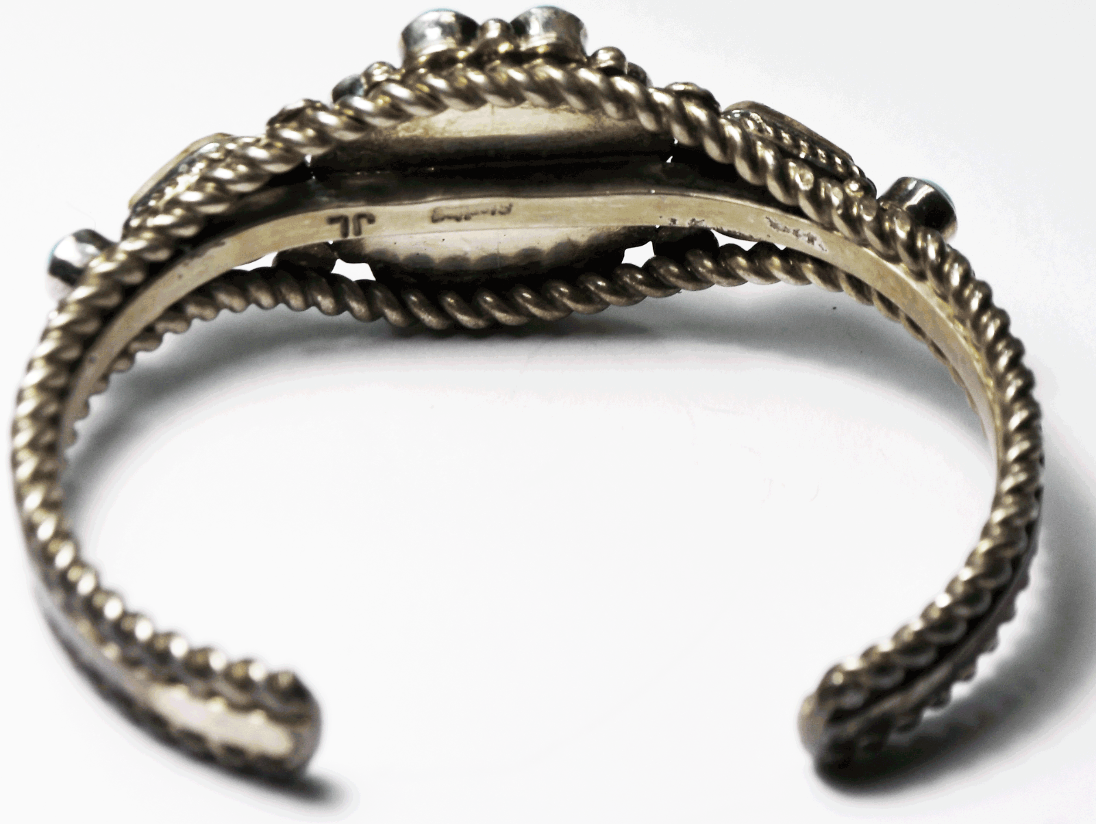 Sterling Signed JL Turquoise Cluster Jasper Cuff Bracelet 26mm 6-3/4" Wrist