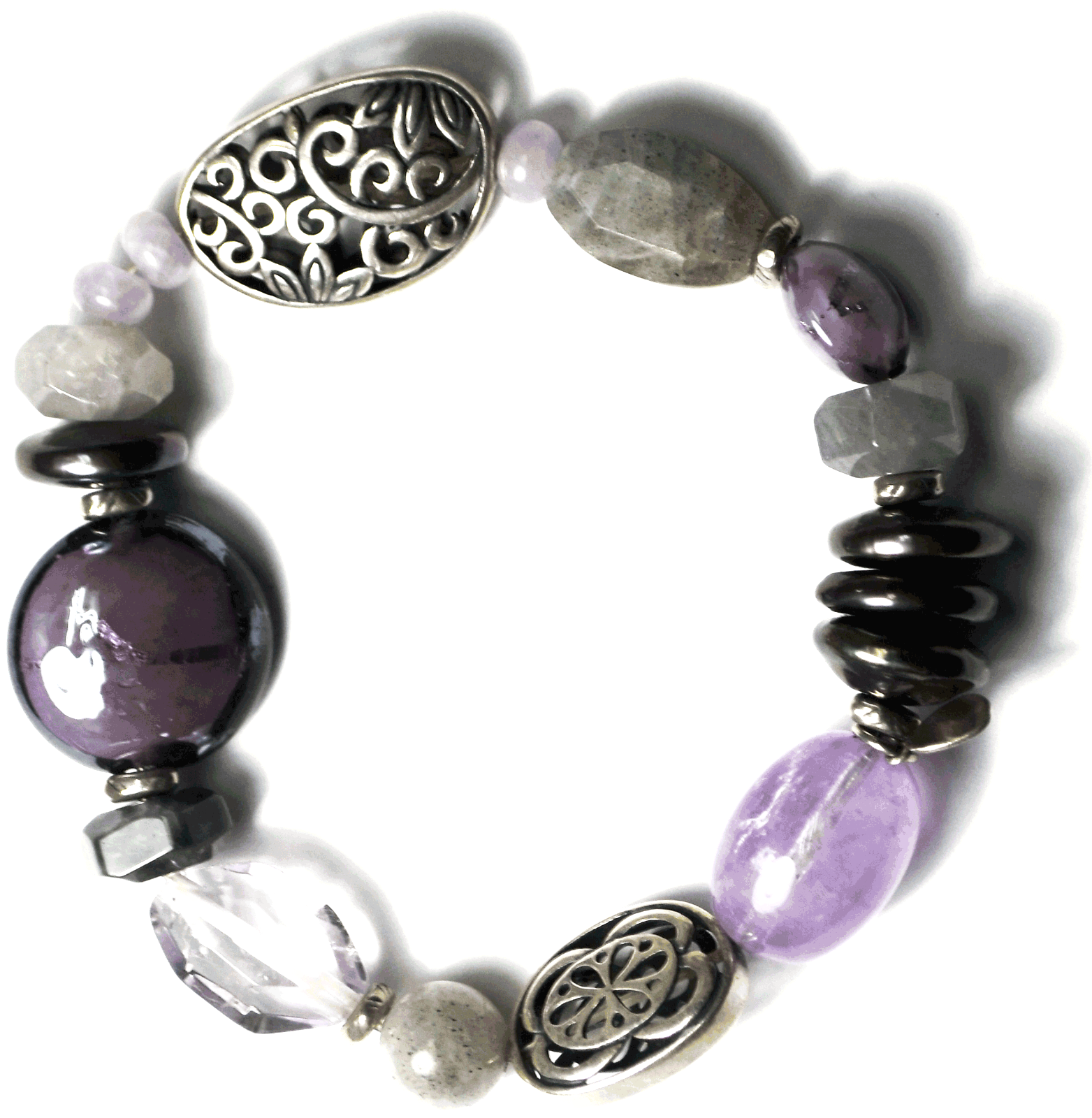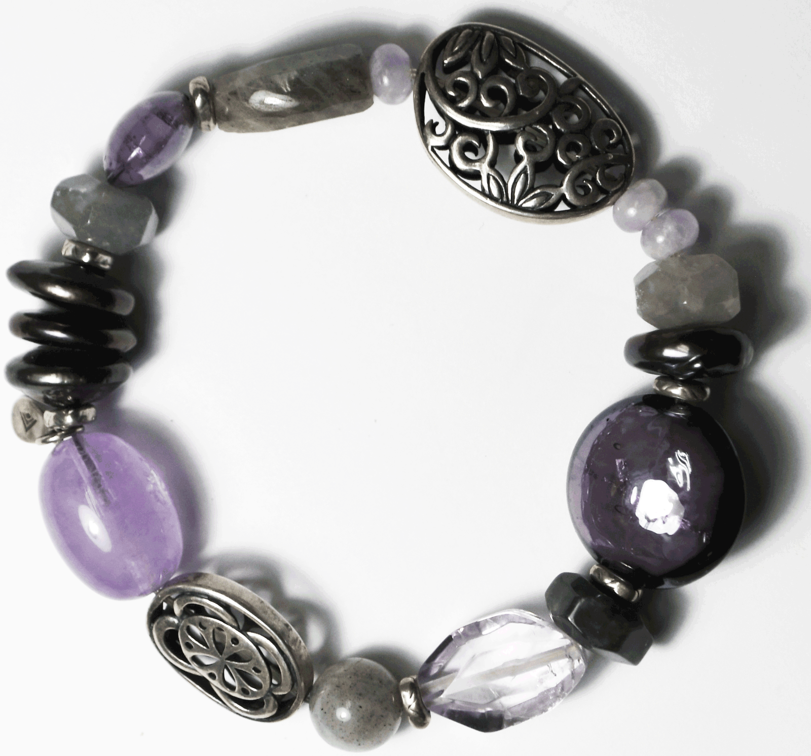 Sterling Silpada Canyon Amethyst Feldspar Pearl Stretch Small Bracelet B2085