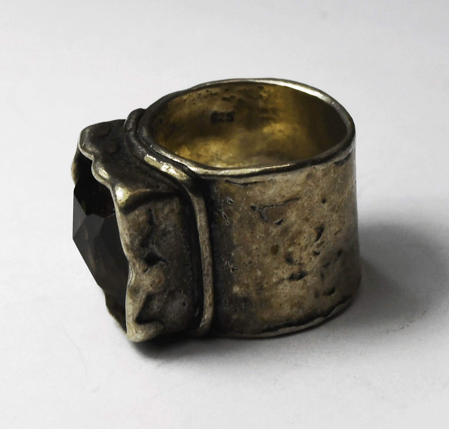 Sterling Silpada R1453 Square Smoky Quartz Hammered Ring 16mm Size 5