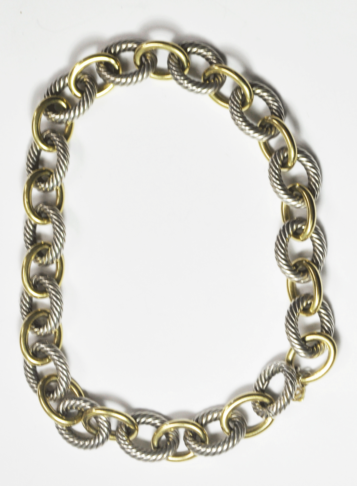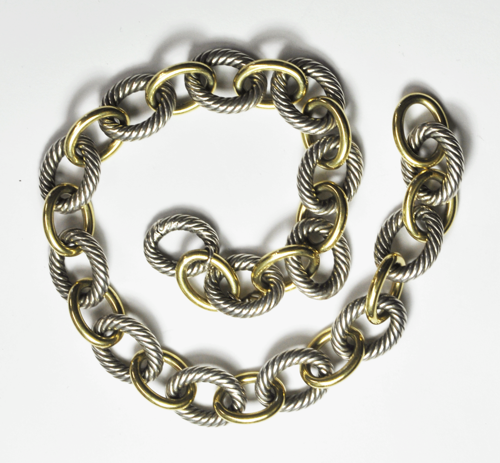 Sterling Silver 18k David Yurman 18mm Oval Chain Necklace 17"