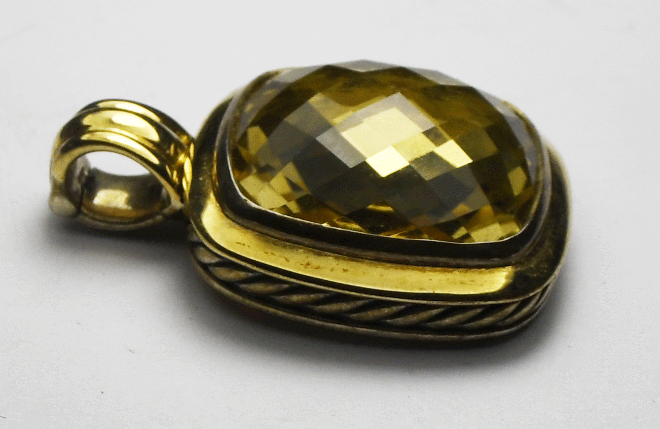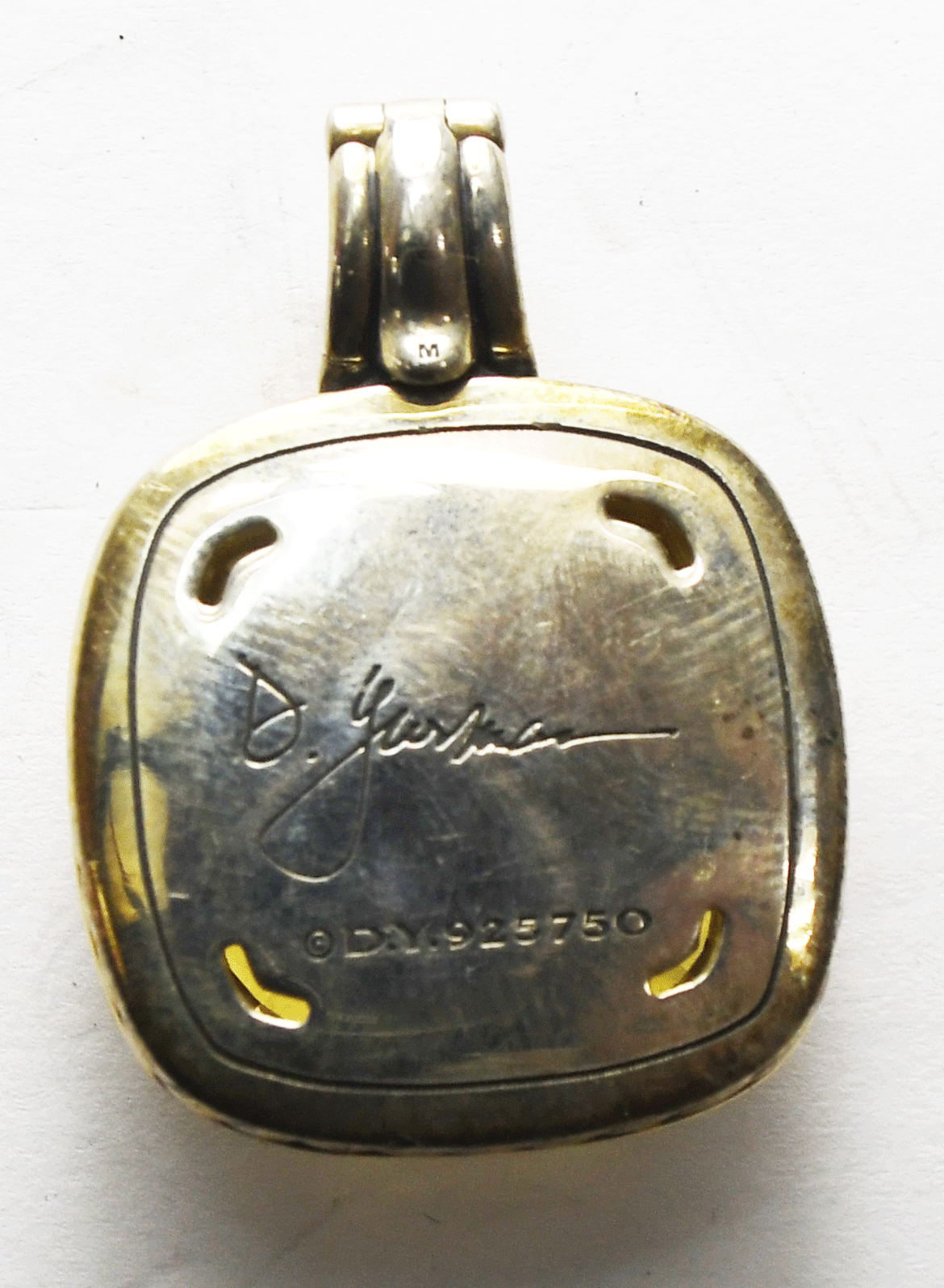 Sterling Silver & 18k David Yurman 34x25mm Square Pendant w Box