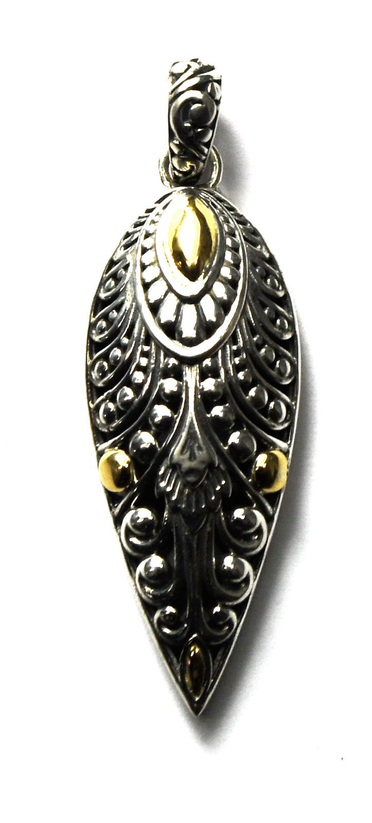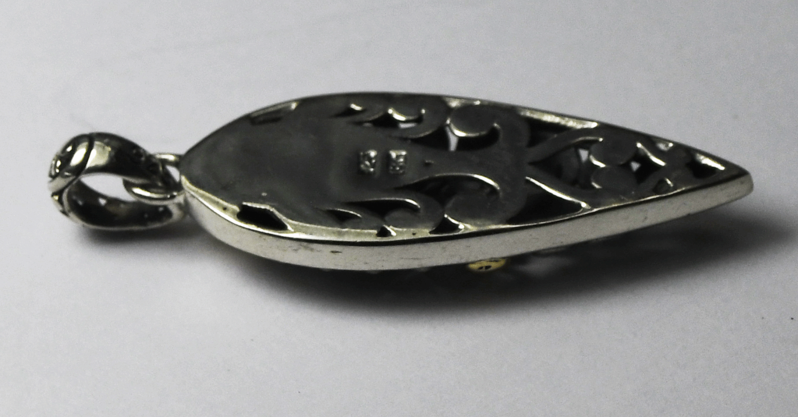 Sterling Silver 18k Teardrop Filigree Pendant 41mm x 13mm