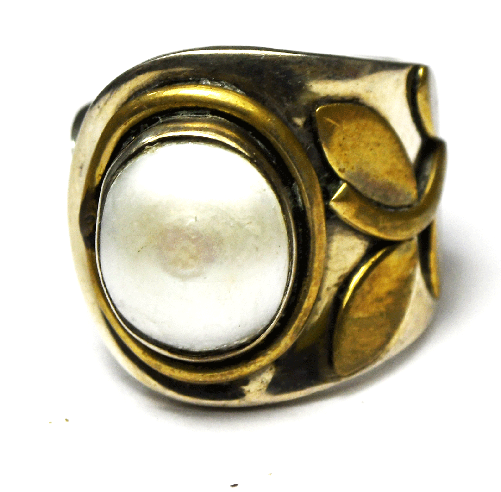 Sterling Silver Adjustable Bronze Floral Vine MOP Ring 19mm Size 6-1/2