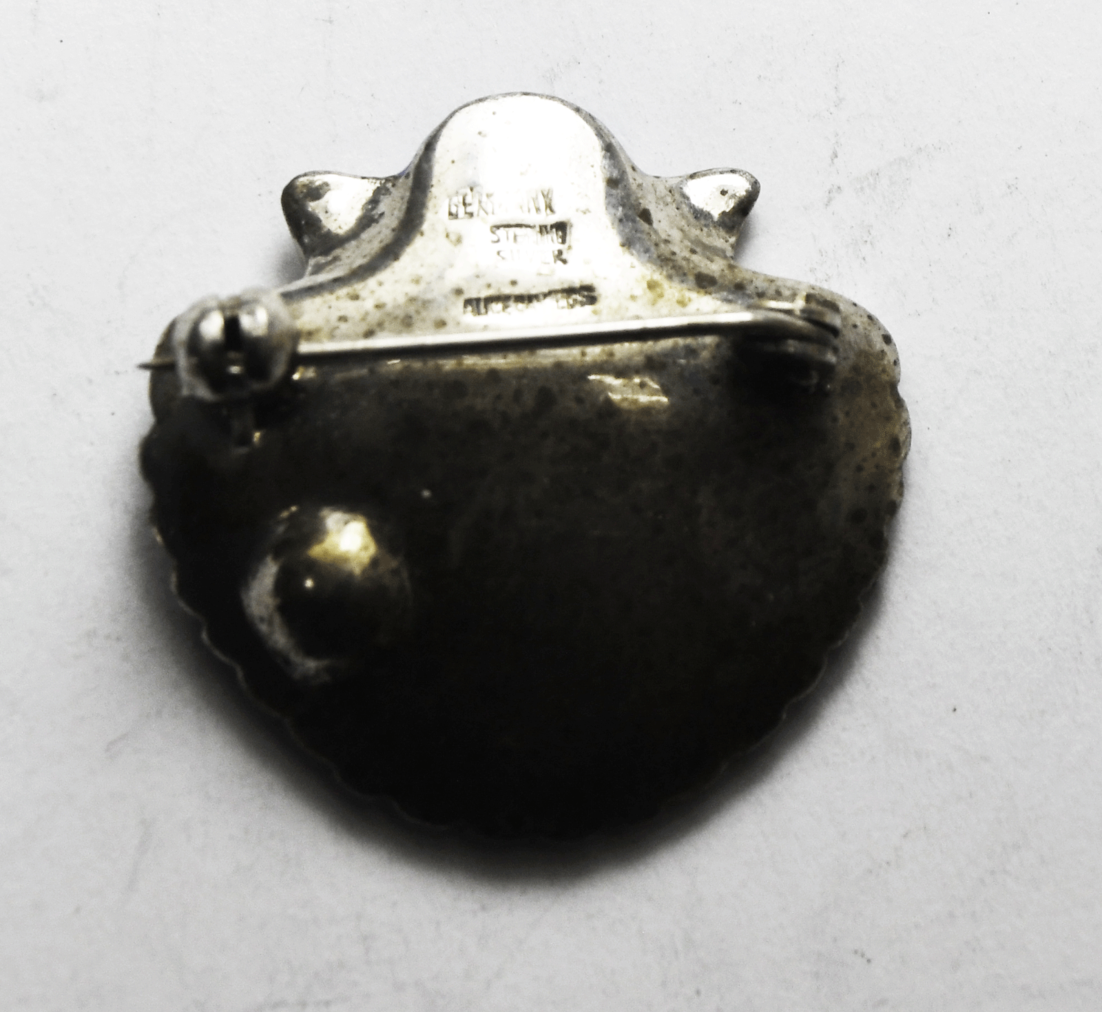 Sterling Silver Alice Caviness Blue Enamel Shell Pearl Brooch Pin 28mm