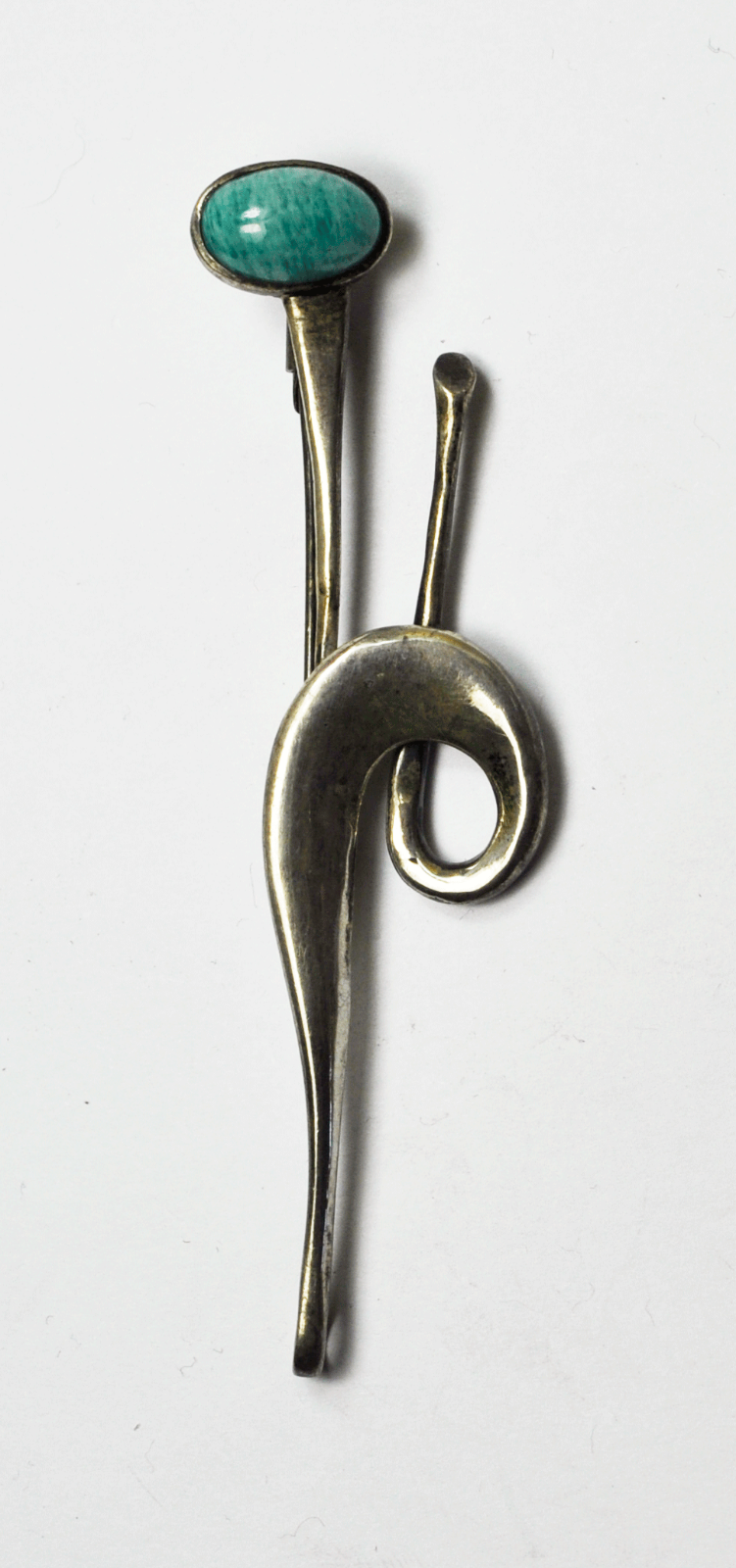 Sterling Silver Amazonite Blue Oval Long Vintage Brooch Pin Abstract 3-5/8"