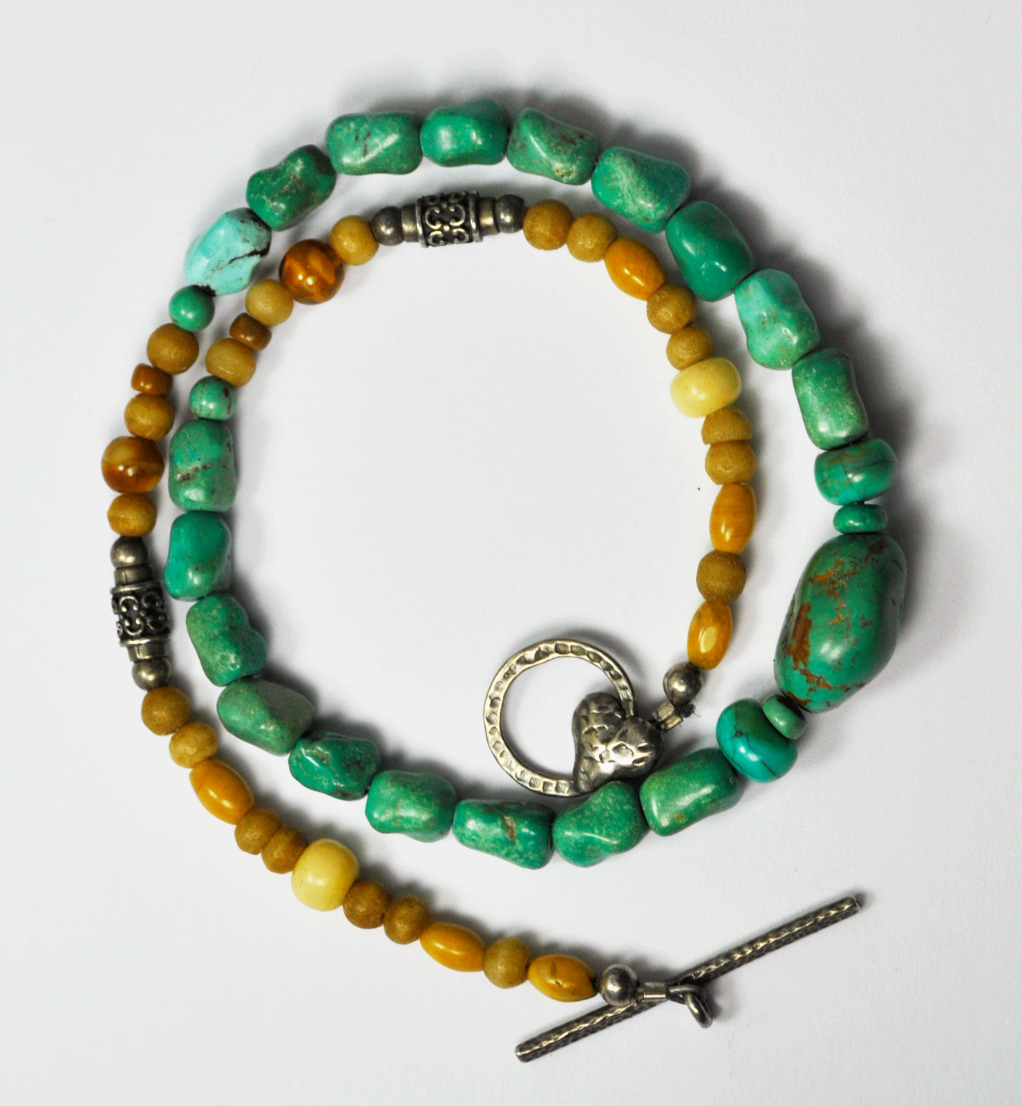 Sterling Silver Amber 12mm Turquoise Chunky Bead Heart Toggle Necklace 15"