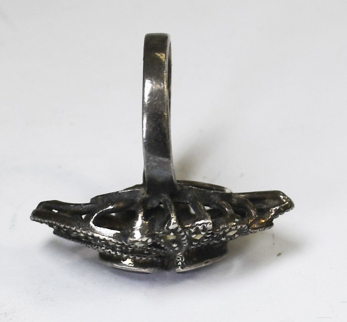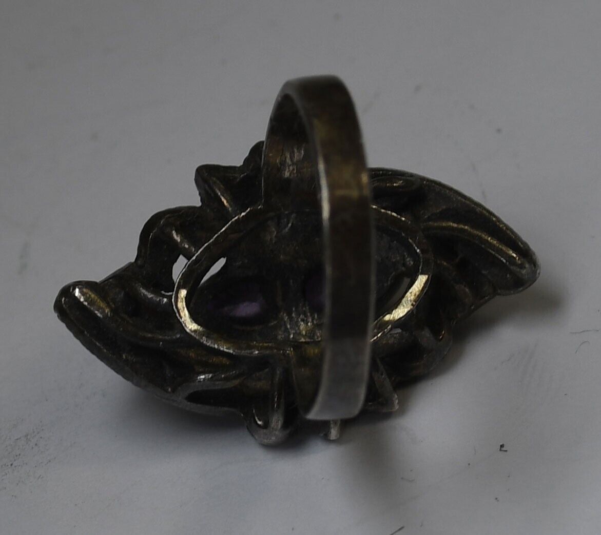 Sterling Silver Amethyst Marcasite Ring 29mm Size 6