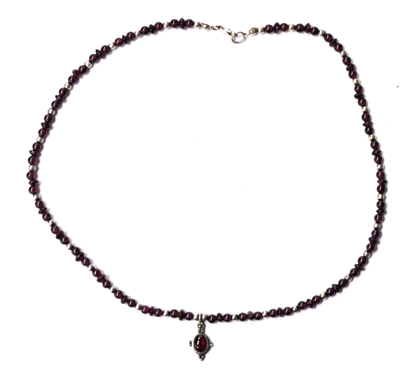 Sterling Silver Amethyst Round 3.5mm Bead 17.5" Necklace & 20mm Pendant