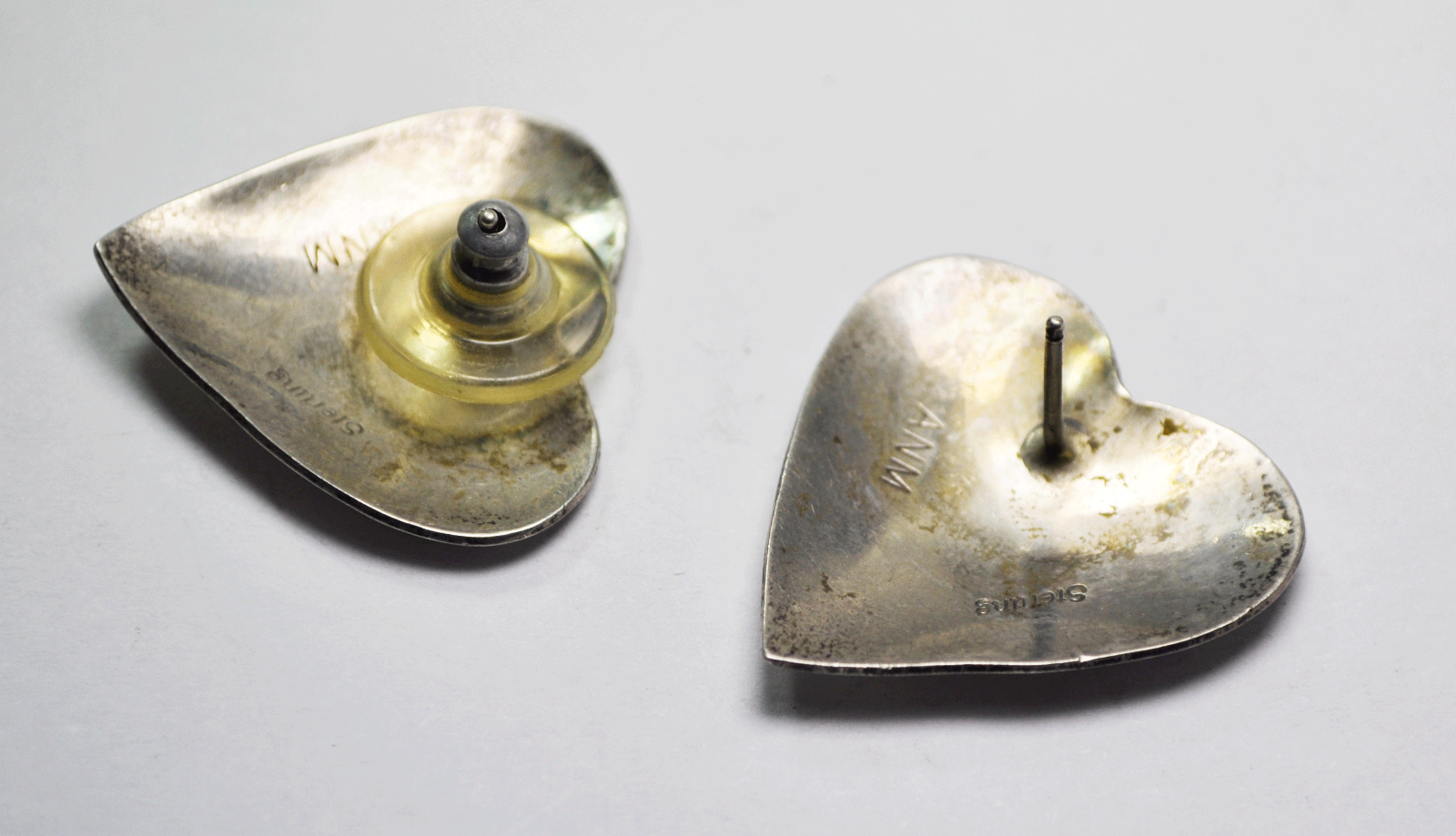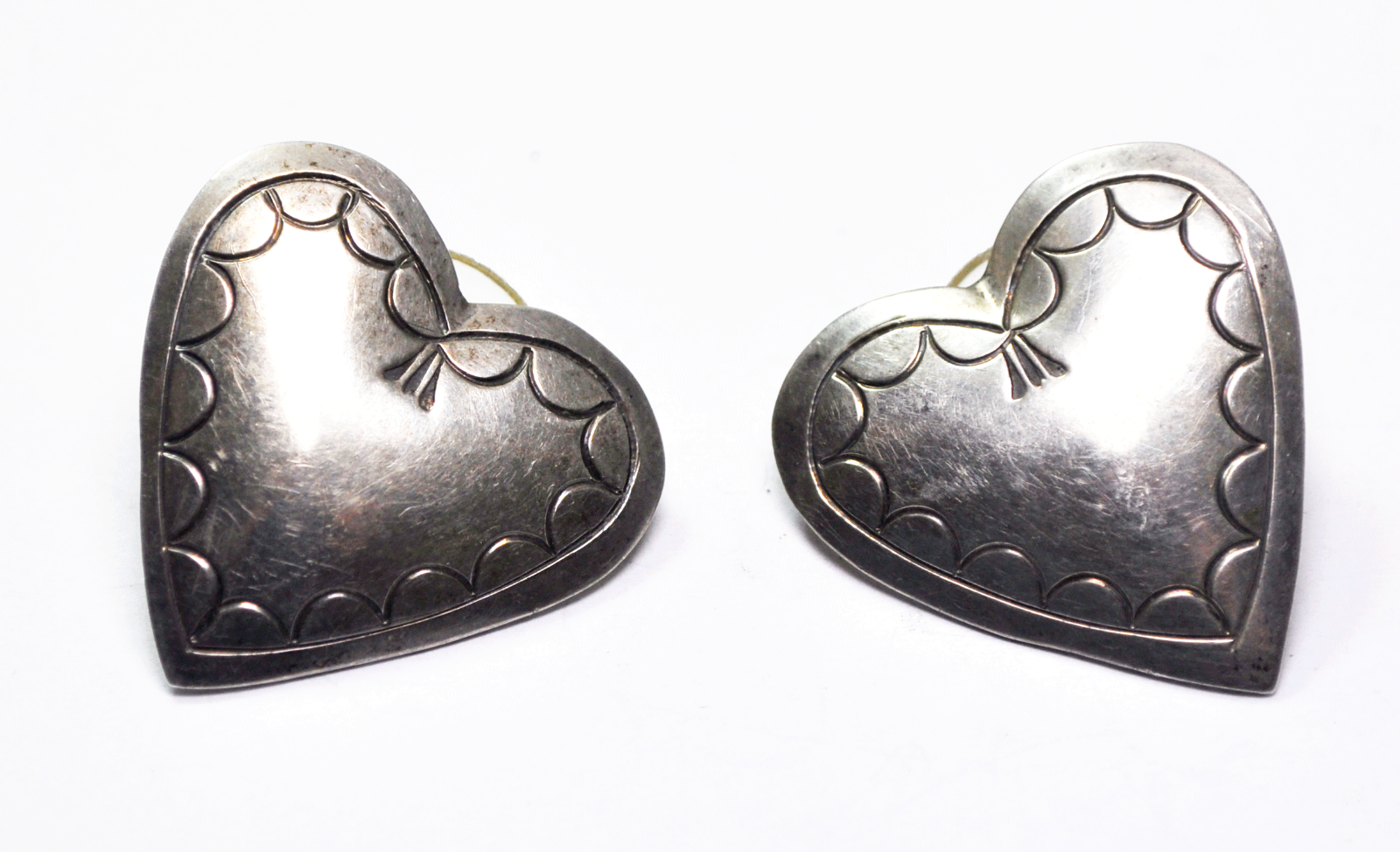 Sterling Silver ANM Heart Shape Etched Earrings 25mm Domed Pierced Studs