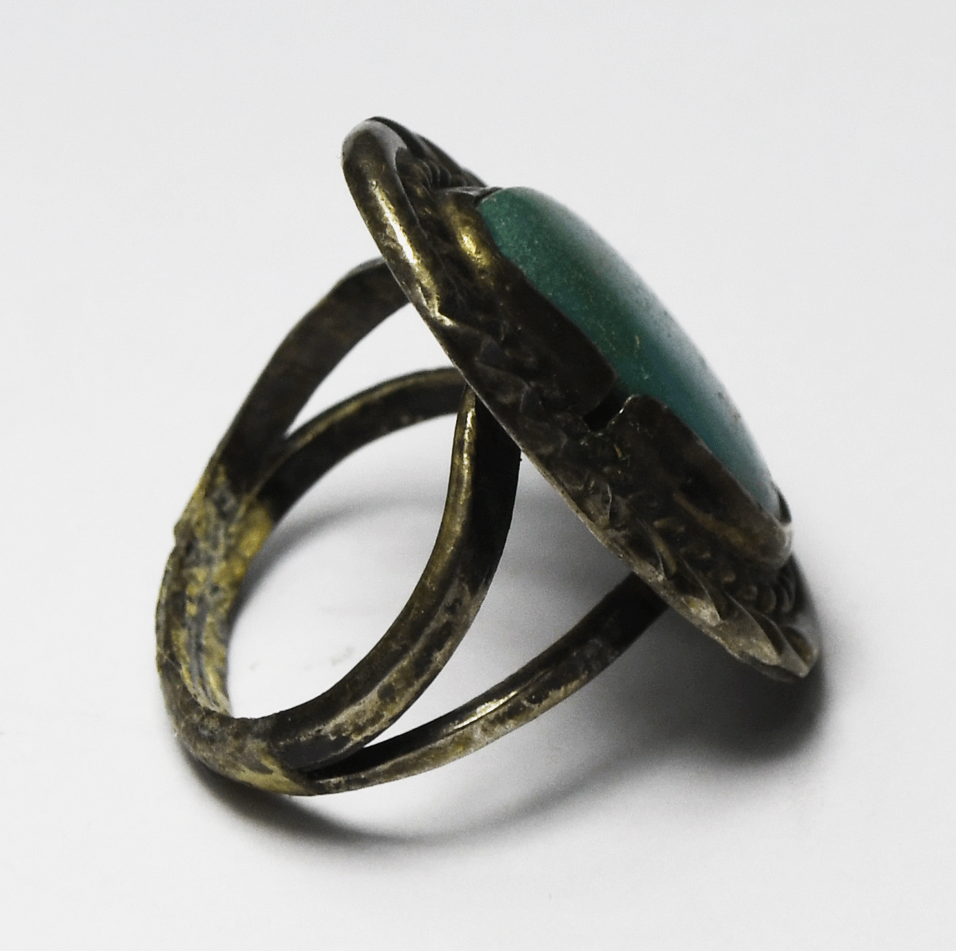 Sterling Silver Antique Blue & Green Turquoise Ring 27mm Bear Paw Edge Size 7