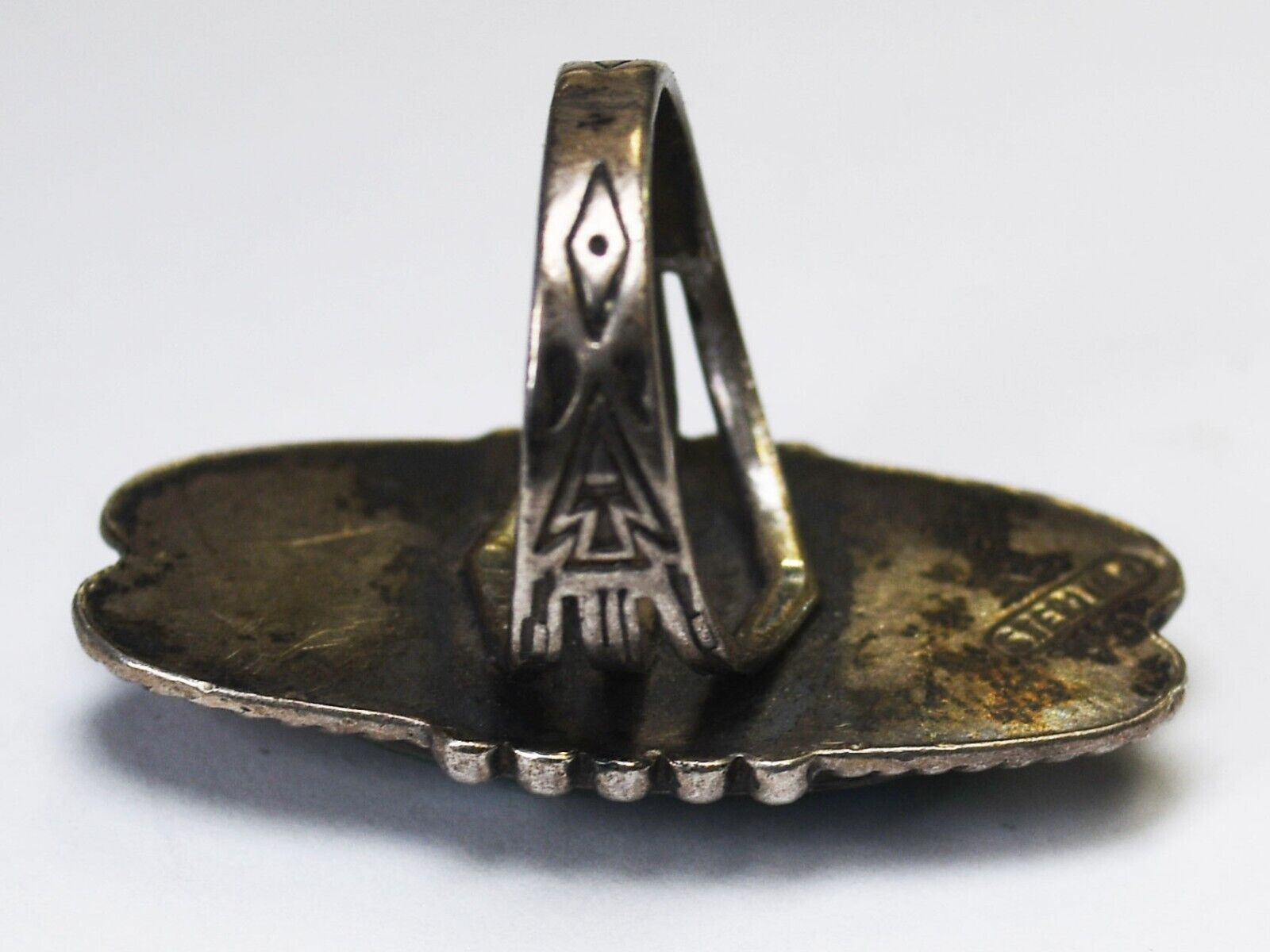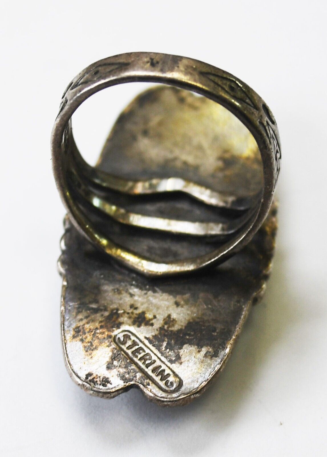 Sterling Silver Antique Green Blue Turquoise Arrows Ring 36mm Size 6.25
