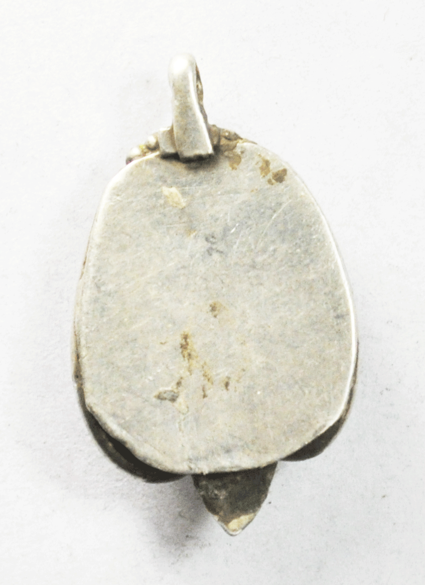 Sterling Silver Antique Green Turquoise Scroll Dot Pendant 33mm x 20mm