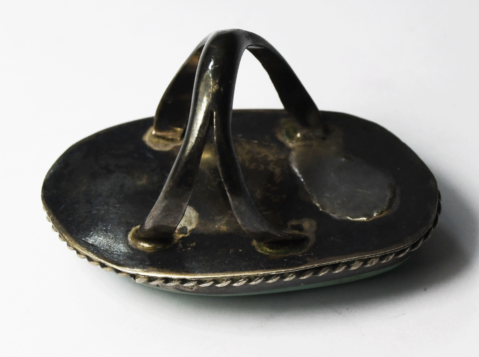 Sterling Silver Antique Large Pale Turquoise Ring 43mm Size 7