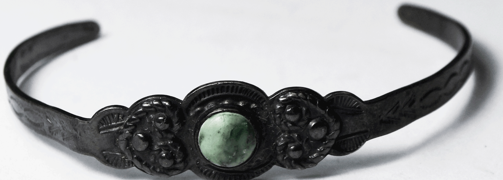 Sterling Silver Antique Small Child's Turquoise Cuff 10mm Bracelet 5" Wrist