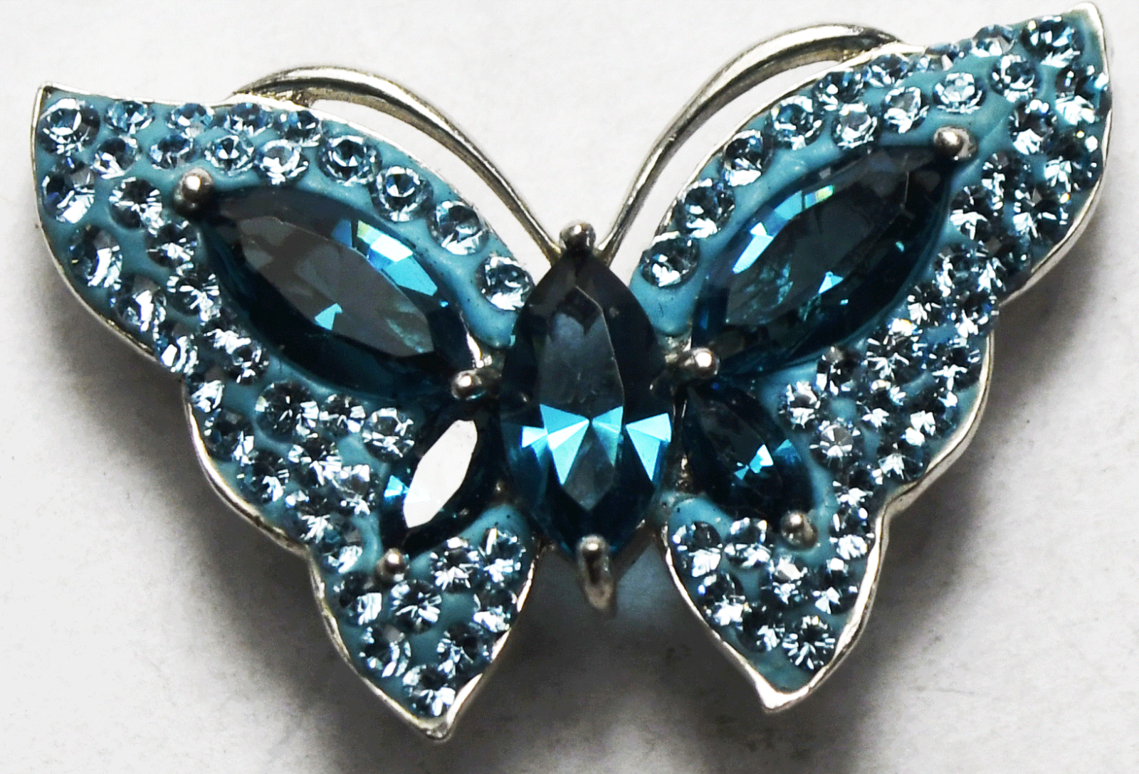 Sterling Silver AU Blue Butterfly Moth CZ Pendant 32mm x 21mm