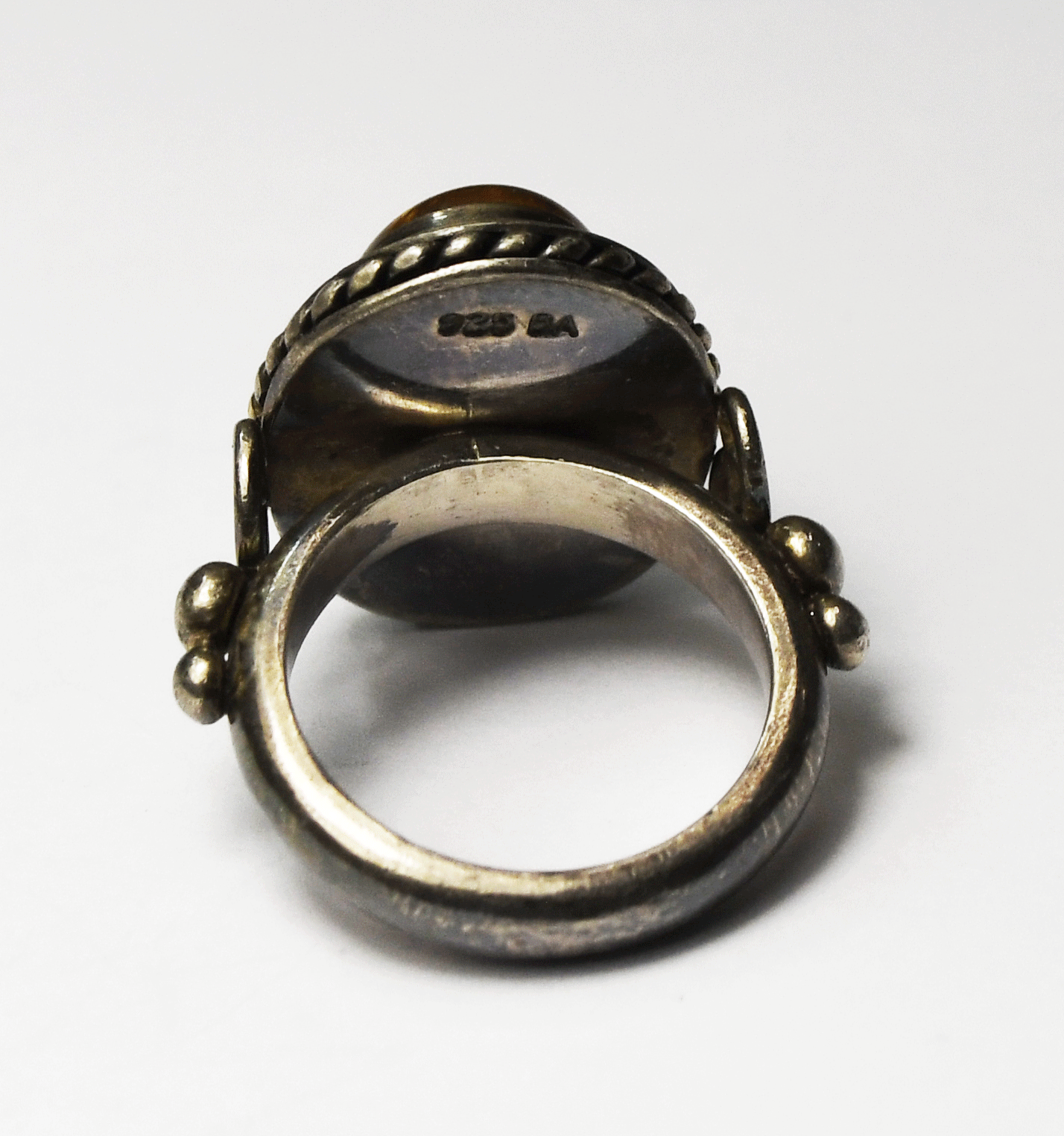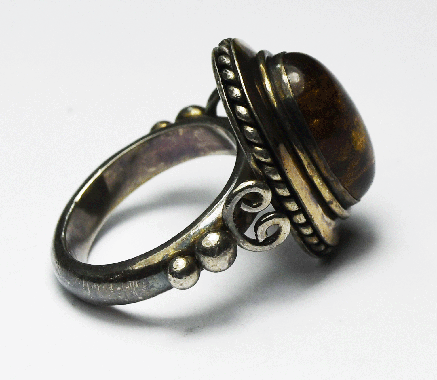 Sterling Silver Bali Suarti Baltic Amber Oval Ring 20mm Size 5