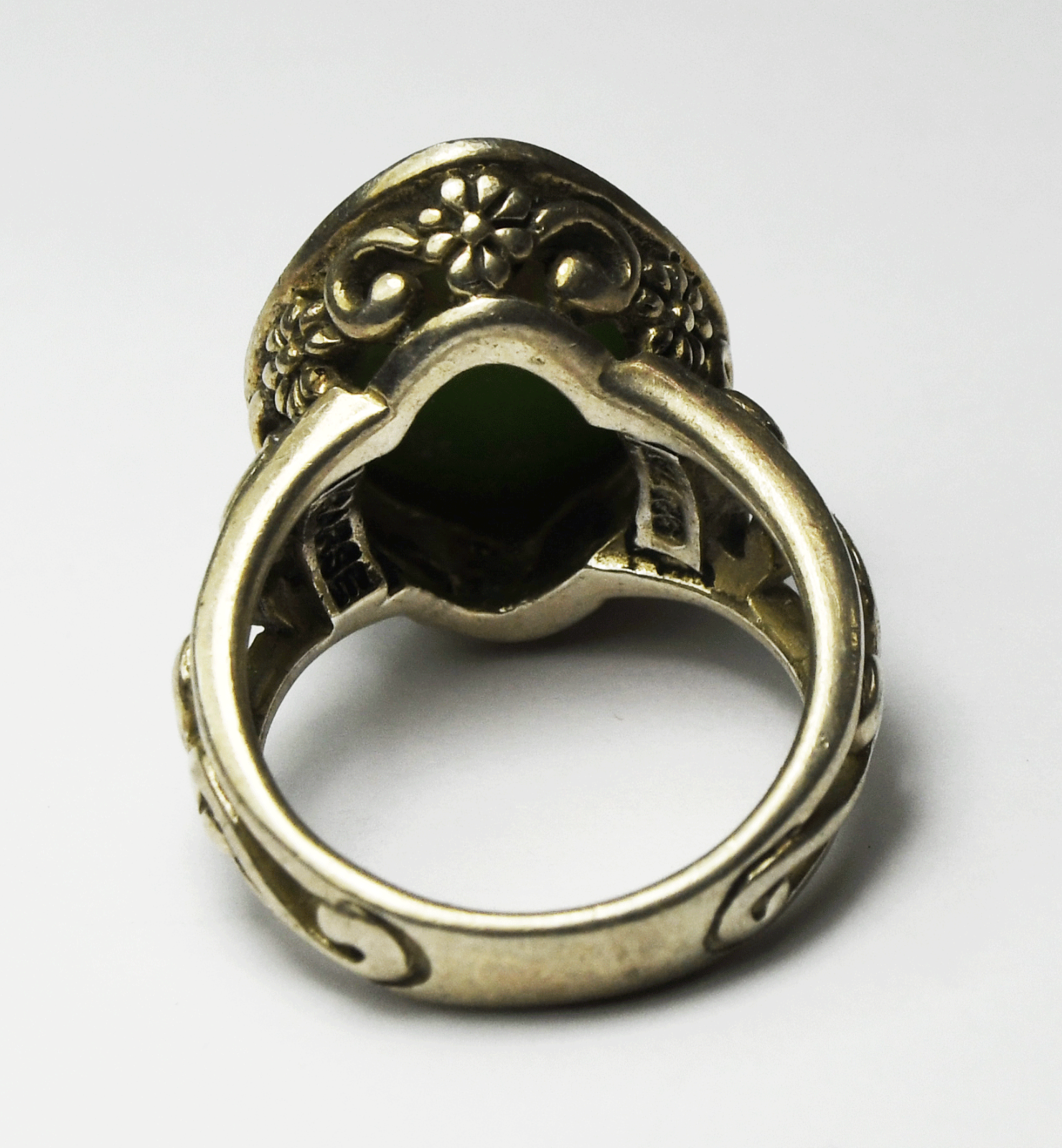 Sterling Silver Barse Bright Green Turquoise Filigree 21mm Ring Size 7
