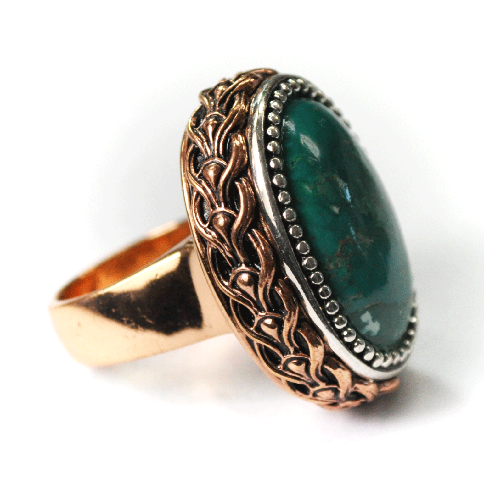 Sterling Silver Barse Large Gold Tone Oval Turquoise Ring 31mm Size 6-1/2