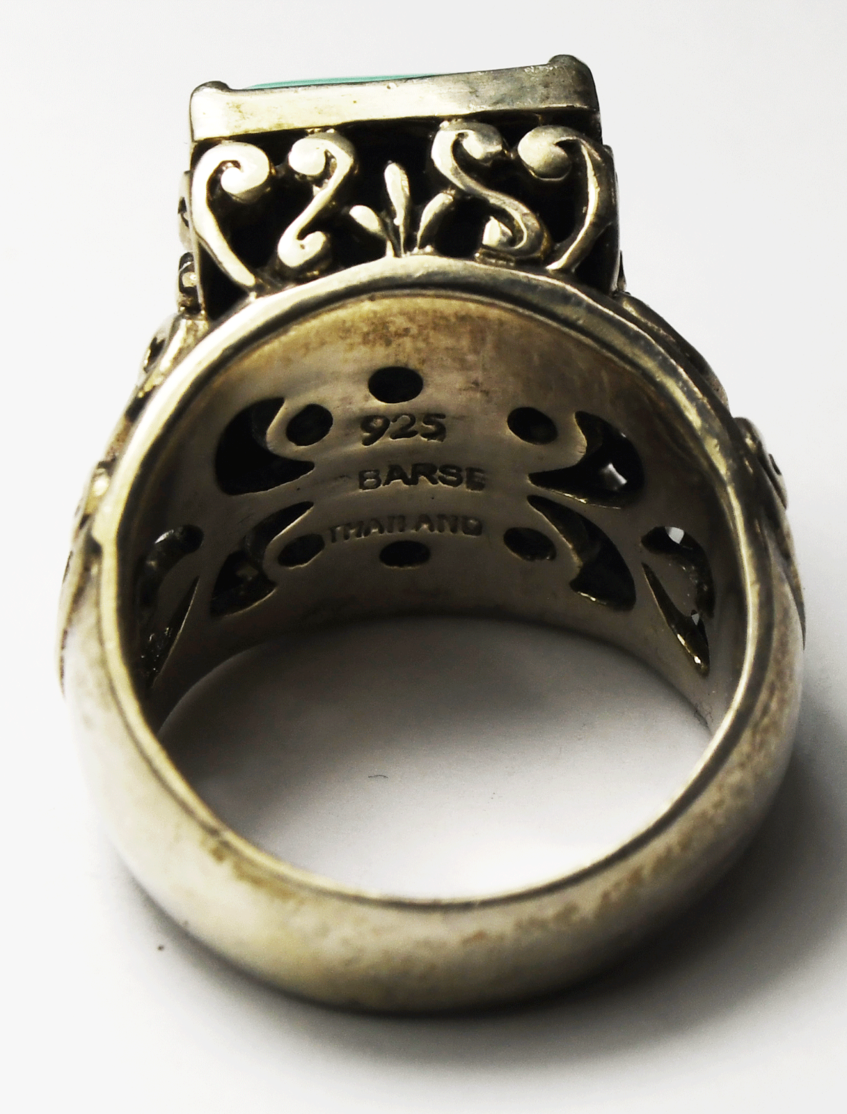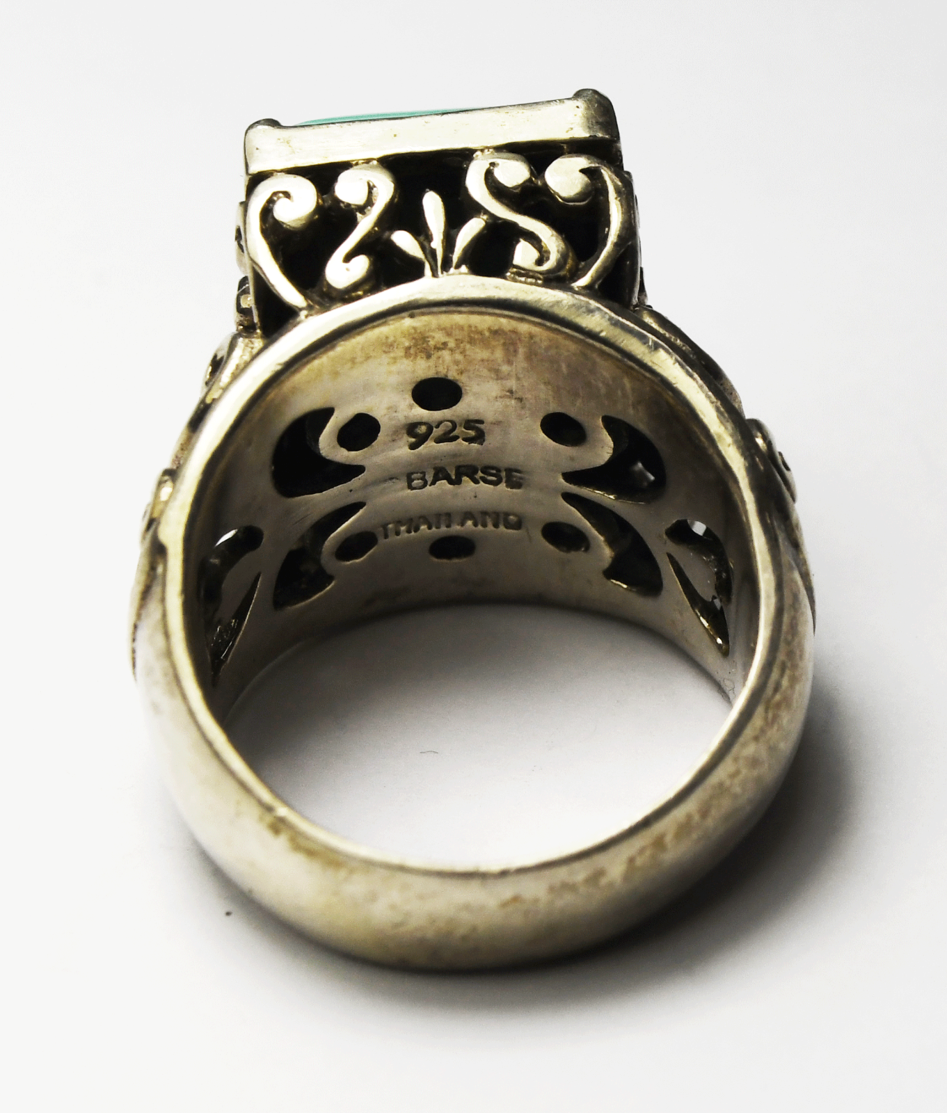 Sterling Silver Barse Rectangle Turquoise Filigree 21mm Ring Size 10