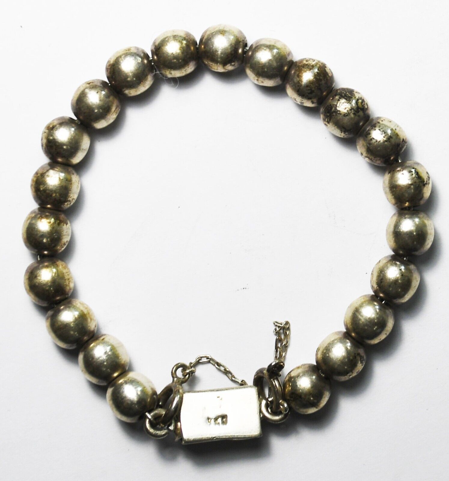 Sterling Silver Beaded Safety Chain Bracelet 8mm 8" 25g