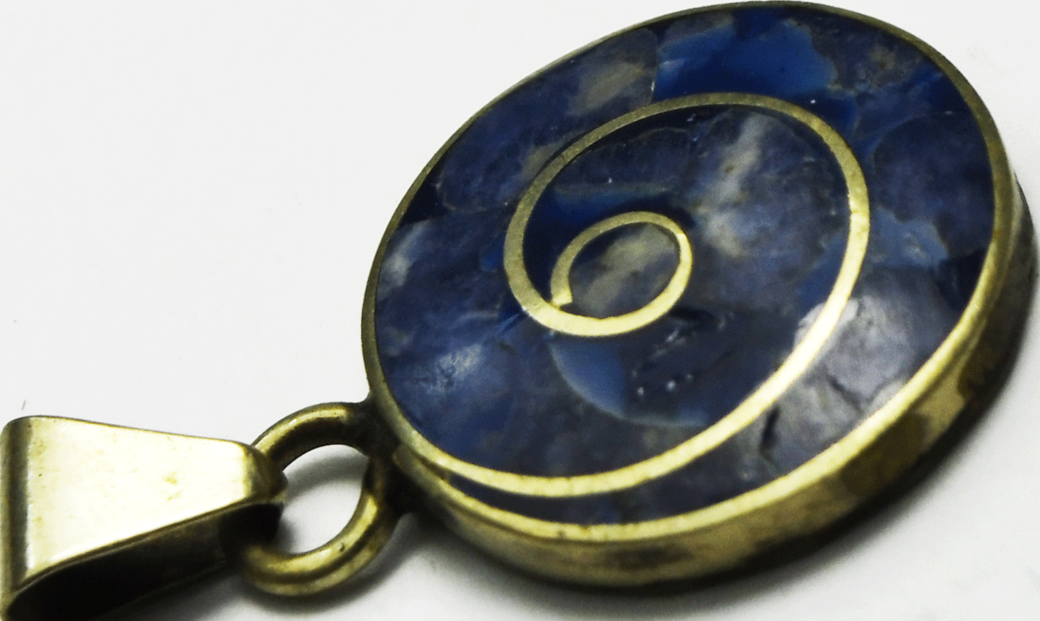 Sterling Silver Blue Sodalite Inlay Spiral Round Disc Pendant 27mm x 17mm