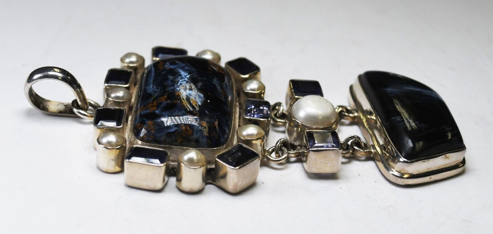 Sterling Silver Blue Tiger's Eye Amethyst Pendant 3.5" x 46mm