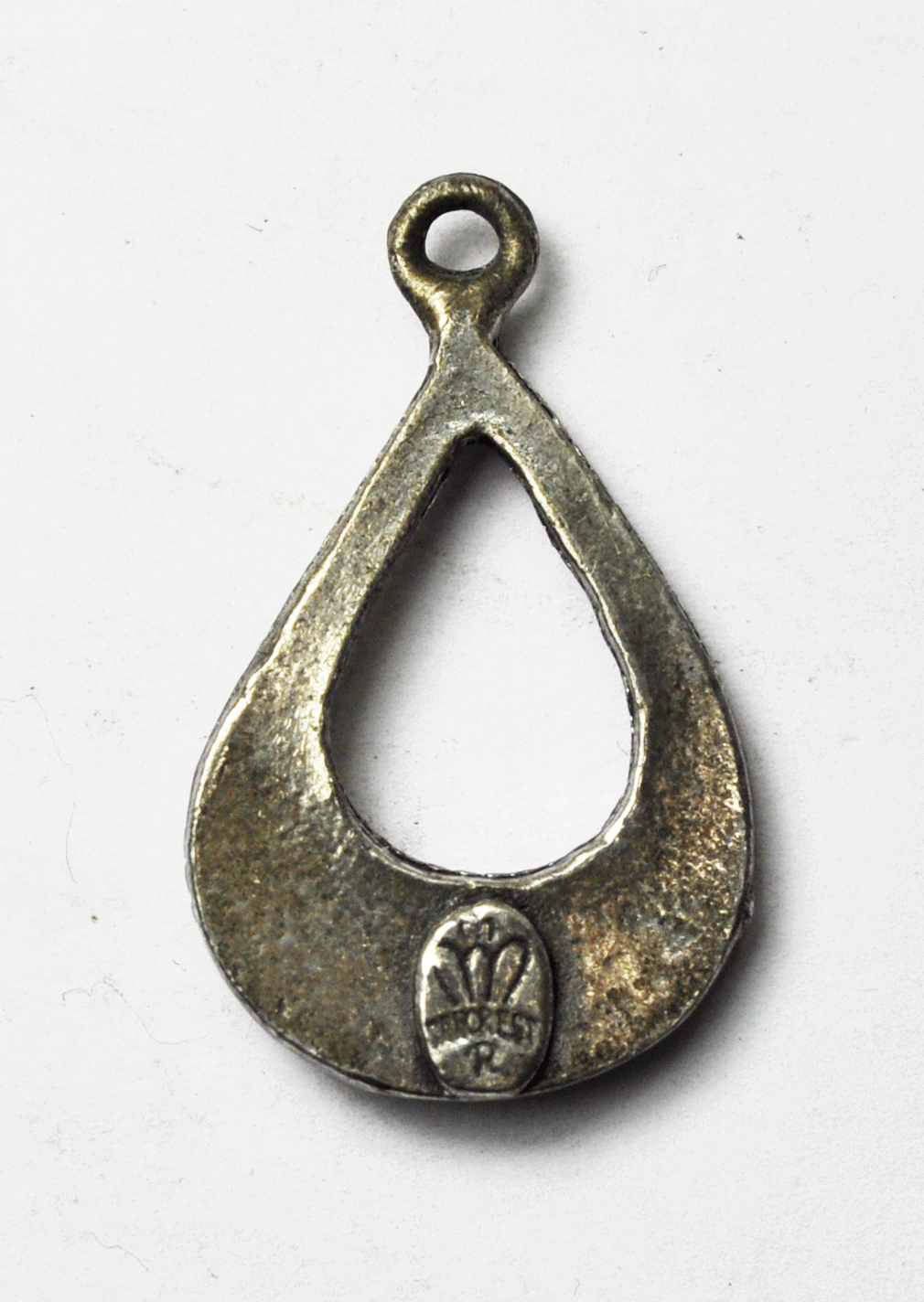 Sterling Silver Blue Turquoise Dot Tear Drop Cut Out Pendant 1.25" 20mm