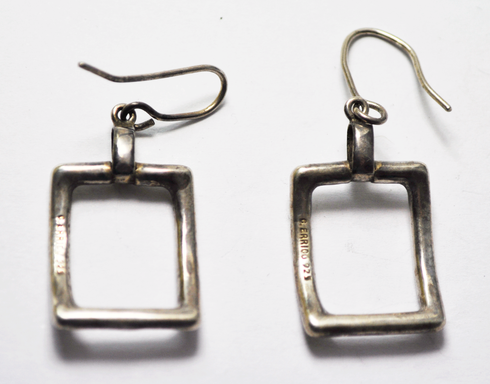 Sterling Silver C Errico Hammered Picture Frame Dangle Drop Earrings 18mm 1.75"