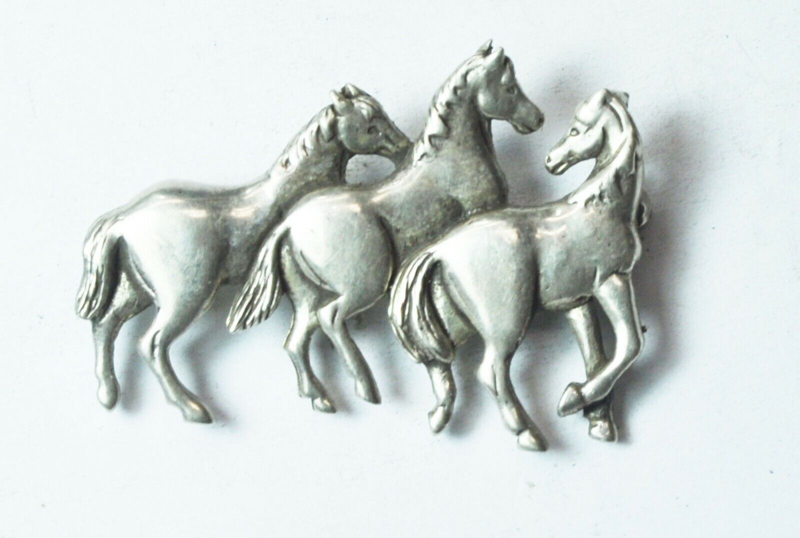 Sterling Silver Carol Felley Three Horse Brooch Pin 46mm x 31mm