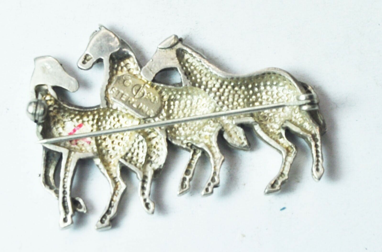 Sterling Silver Carol Felley Three Horse Brooch Pin 46mm x 31mm