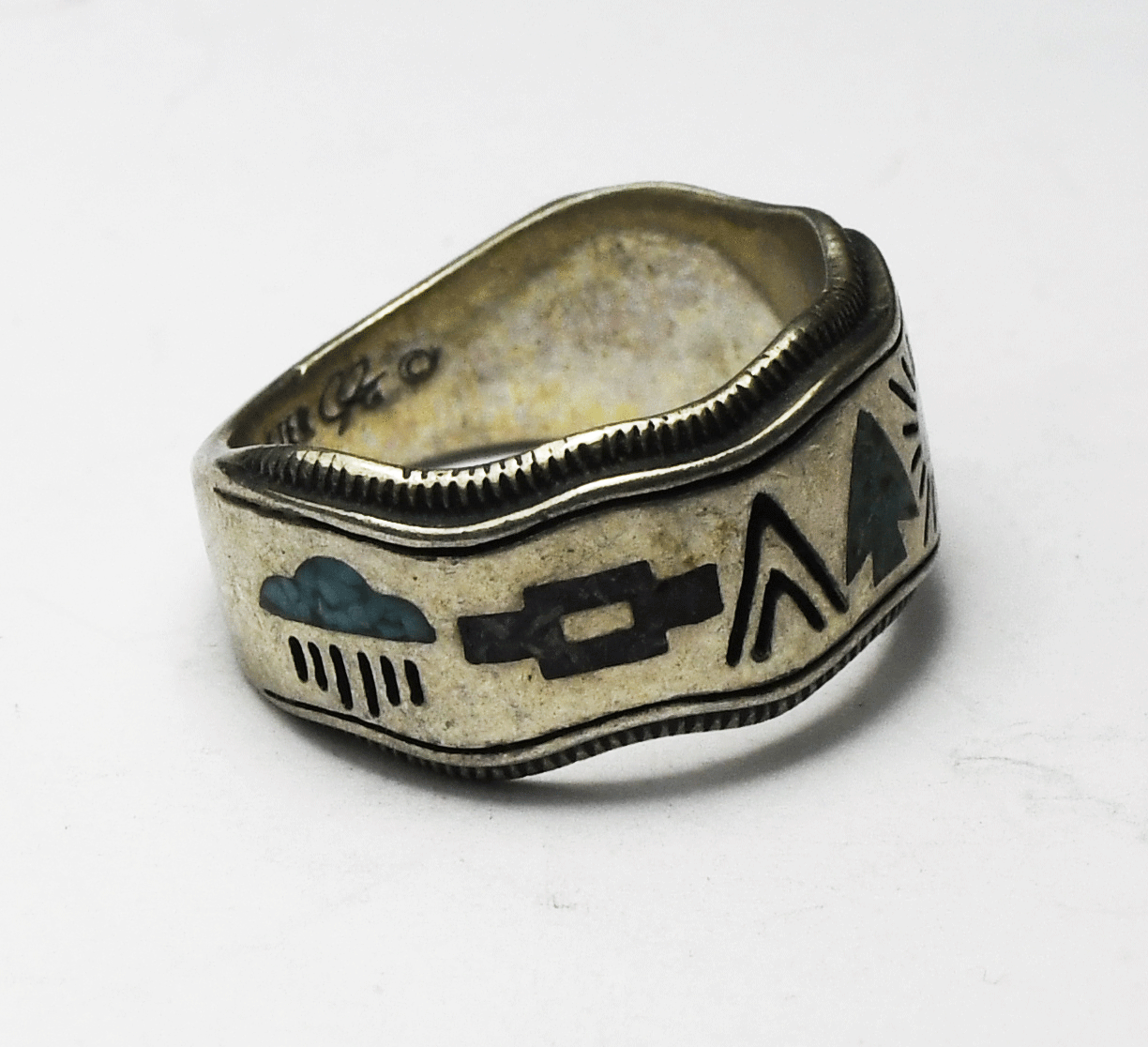 Sterling Silver Carolyn Pollack Chip Inlay Story Teller Ring 11mm Size 7-1/2